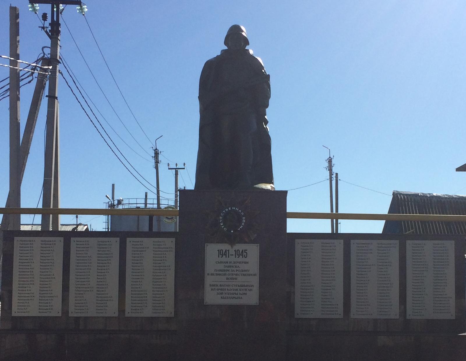 Датировка объекта 1967 год. Памятник состоит из прямоугольного монумента с прикрепленным орденом и табличкой со словами "Сынам и дочерям Заинска, павшим за Родину в Великой Отечественной войне 1941 - 1945 гг. от населения 1967 г.," на котором воздвигнута фигура солдата. Сзади расположена мемориальная доска со списком погибших воинов. Вокруг памятника расположено чугунное ограждение. Зеленые насаждения. Памятник стоит в центральной площади города. Памятник высотой 3м. Постамент 2 м. Мемориальная плита высотой 2,5 м., шириной 4 м.