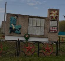Датировка объекта 2003 год. Мемориальный комплекс состоит из стелы, к которой прикреплен орден отечественной войны, табличка со словами "Землякам, павших в боях за Родину" и цифры 1941, 1945" и мемориальной доски с изображением приклонного солдата, винтовка в руках опущена, и прикрепленными 8 табличек с ФИО погибших земляков. Имеется ограждение и, зеленые насаждения. Расположен на центральной улице деревни. Материал - железобетонные металлоконструкции. Высота 2,5 м., мемориальная доска 2,5 м.