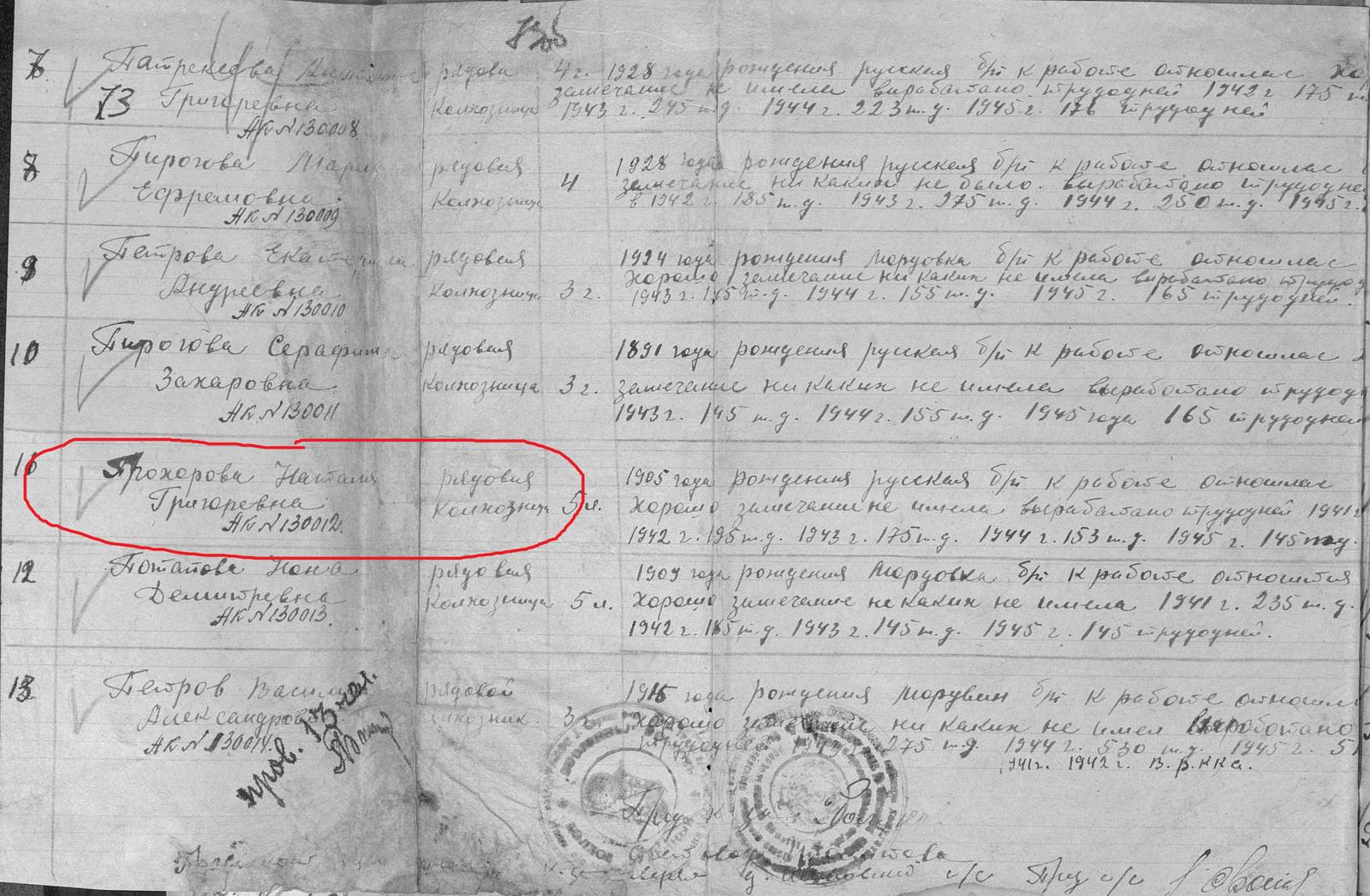 Пирогова Наталья Григорьевна в 1905 году. Место жительства: д.Дальняя Ивановка Ново-Шешминский район ТАССР (ныне Альметьевский район РТ). В годы Великой Отечественной войны работала в колхозе "Красная Долина"рядовой колхозницей. Награждена медалью "За доблестный труд в Великой Отечественной войне 1941–1945 гг." (Акт от 28 апреля 1947 г, фонд 3610, опись 2, дело № 325, лист 73, № 130012).