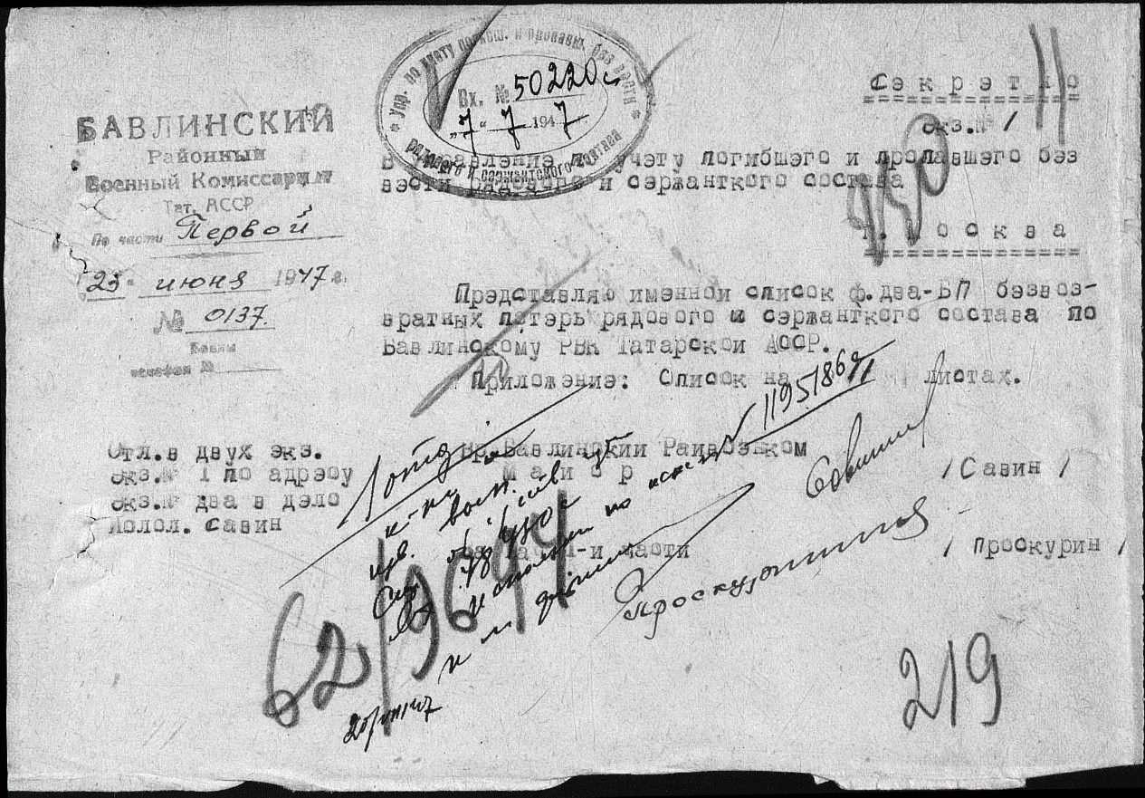 Родился в селе Ивановка в 1915 году. Призван на фронт Бавлинским РВК в ноябре 1941 года. Пропал без вести в феврале 1942 года. Жена - Пупина Прасковья Михайловна.