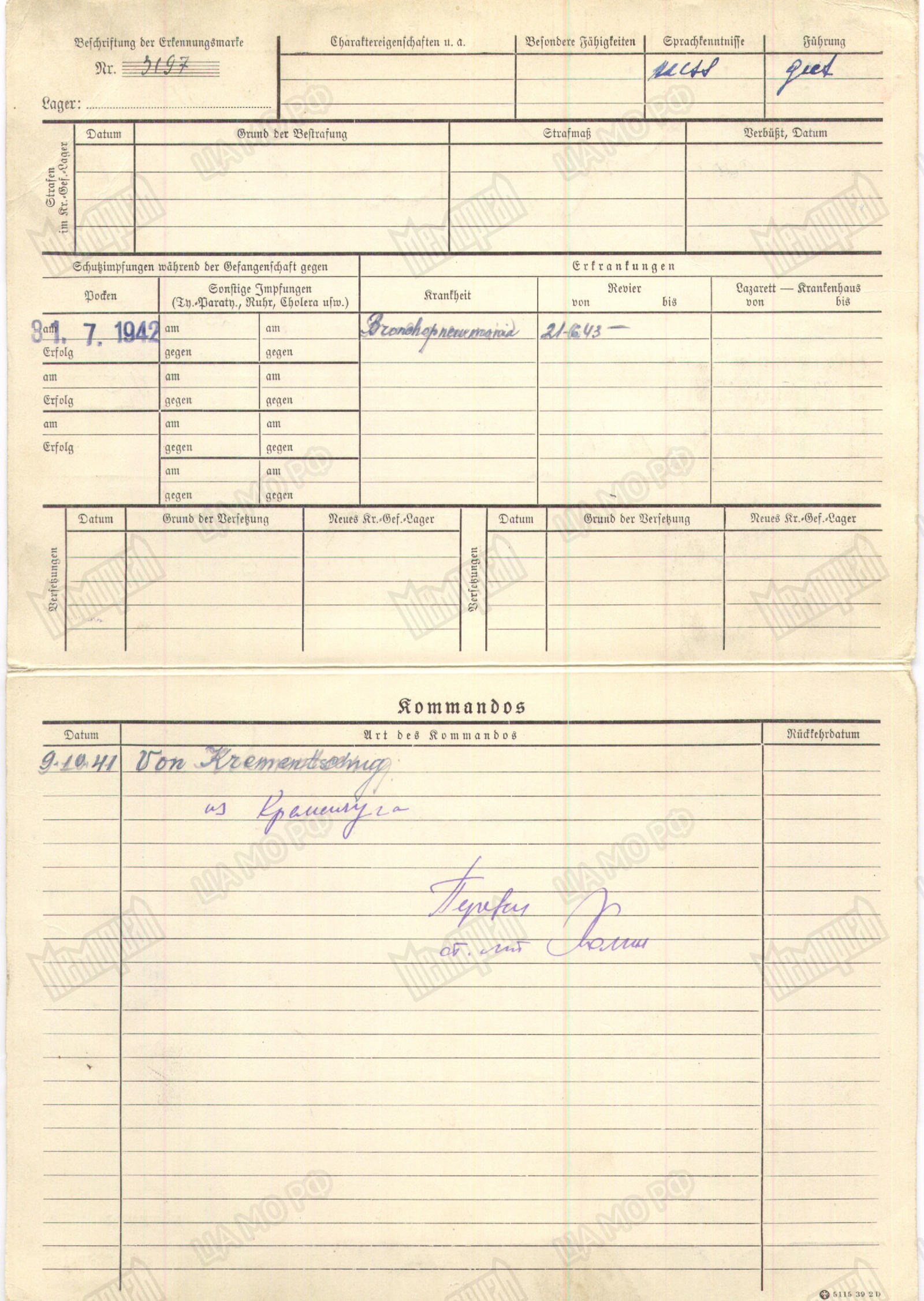 Родился 23 сентября 1909 г. в Чистополе. Последнее место службы: 66 сп. Пленен 23 сентября 1941 г. в Слободке. Содержался в офлаге XI A. Лагерный номер 3197. Интендант Русаков Александр Павлович погиб в плену 2 августа 1943 г.