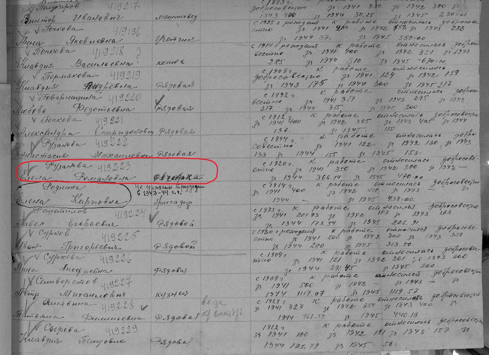 Рузанова Елена Романовна родилась в 1920 году. Место жительства: п.Елховка Чистополский район ТАССР. В годы Великой Отечественной войны работала в колхозе им.Молотова овцеводом. Награждена медалью "За доблестный труд в Великой Отечественной войне 1941–1945 гг." (Акт от 28 апреля 1947 г, фонд 3610, опись 2, дело № 325, лист 28, № 419223). Похоронена на сельском кладбище с.Новошешминск.
