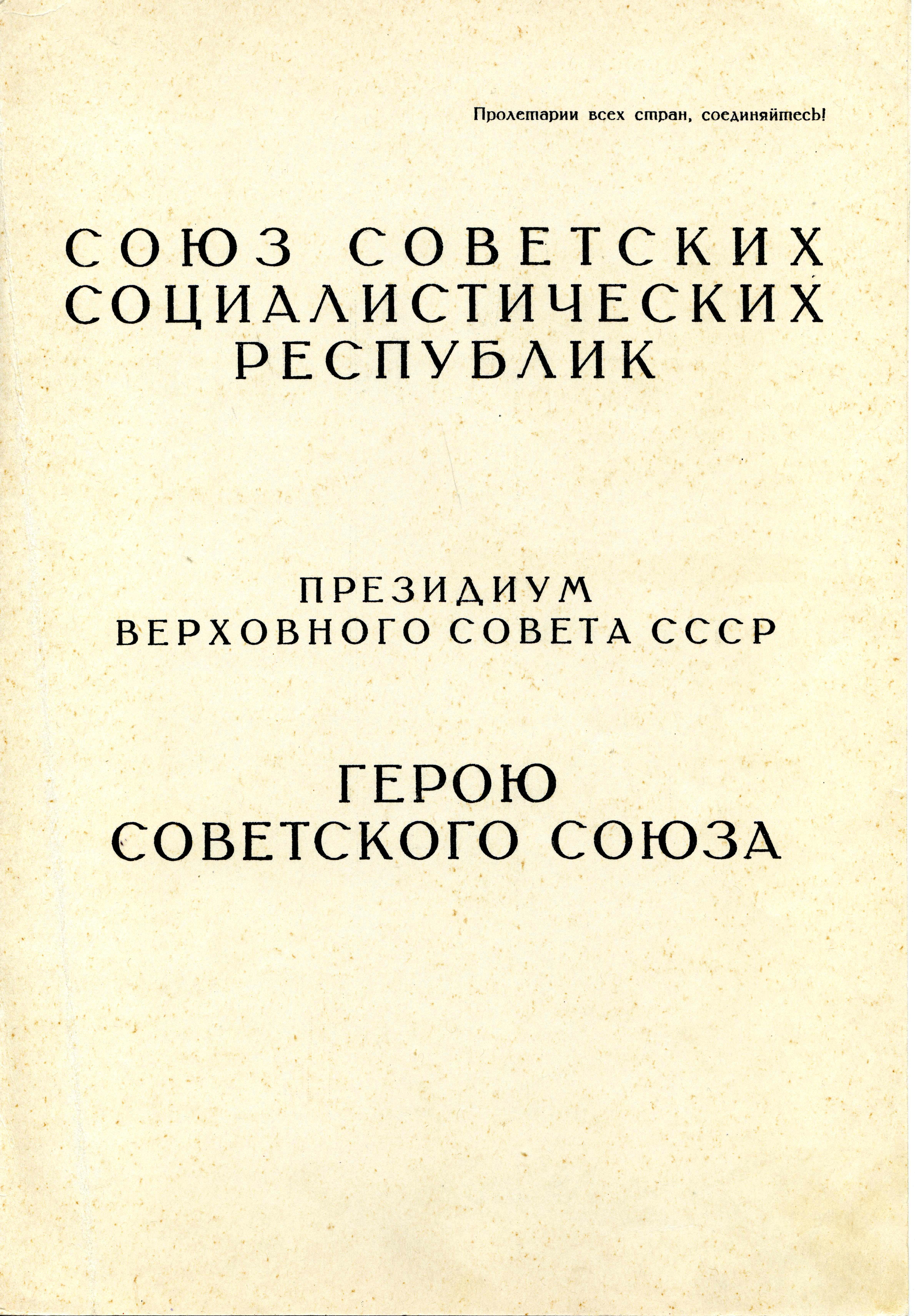 Фото №86157. Грамота о присвоении звания Героя Советского Союза Сафиуллина Г.Б. Москва. 11 января 1947 годаСоч.: Через реки, через горы... К., 1973; Дорогами Победы. К., 1987.