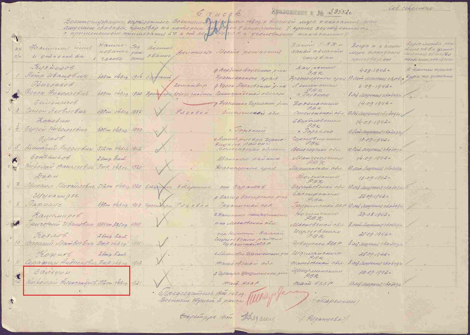 САЛЬЦИН НИКОЛАЙ АЛЕКСАНДРОВИЧ родился в 1921 году в с.Слобода Черемуховая Чистопольского кантона ТАССР. (ныне с.Слобода Черемуховая Новошешминского района РТ). Мобилизован Новошешминским РВК,кр-ц,146 сд. Причина смерти: убит 02.06.43.г. Область выбытия: Темлаг(осужден 30.9.42).