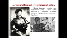 Музей "Преодоление" школы №19 Автозаводского района города Набережные Челны приглашает вас на виртуальную выставку исследовательских работ учащихся "У войны не женское лицо". Представляем вашему вниманию работу обучающейся 10 медицинского класса Унгарбаевой Элины "Сестрички Великой Отечественной войны".