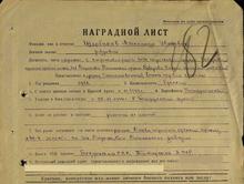 Из наградного листа: «В наступательных боях по расширению плацдарма на западном берегу реки Одер в районе города Кюстрин, в последующих боях по штурму берлина с 14 по 30 апреля 1945 г., действуя в составе стрелкового отделения, проявил образцы отваги и стойкости. Охотясь за немецкими фаустниками он пробирался по развалинам домов, выискивал и уничтожал их. За время боев он из личного оружия истребил 17 фаустников. В одном из домов захватил 7 фауст-патронов и ими же уничтожил три огневые точки противника».