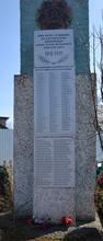 Датировка объекта 1985 год. Стела с прикрепленными табличками "Павших героям - землякам", цифры 1941 - 1945, барельефом с изображением головы солдата в каске в профиль. На переднем плане закреплена металлическая табличка с именами и фамилиями павших солдат. Имеется деревянное ограждение и зеленые насаждения. Расположен на центральной улице деревни. Стела изготовлен из железнобетонных конструкций. Высота с постаментом 6 м.