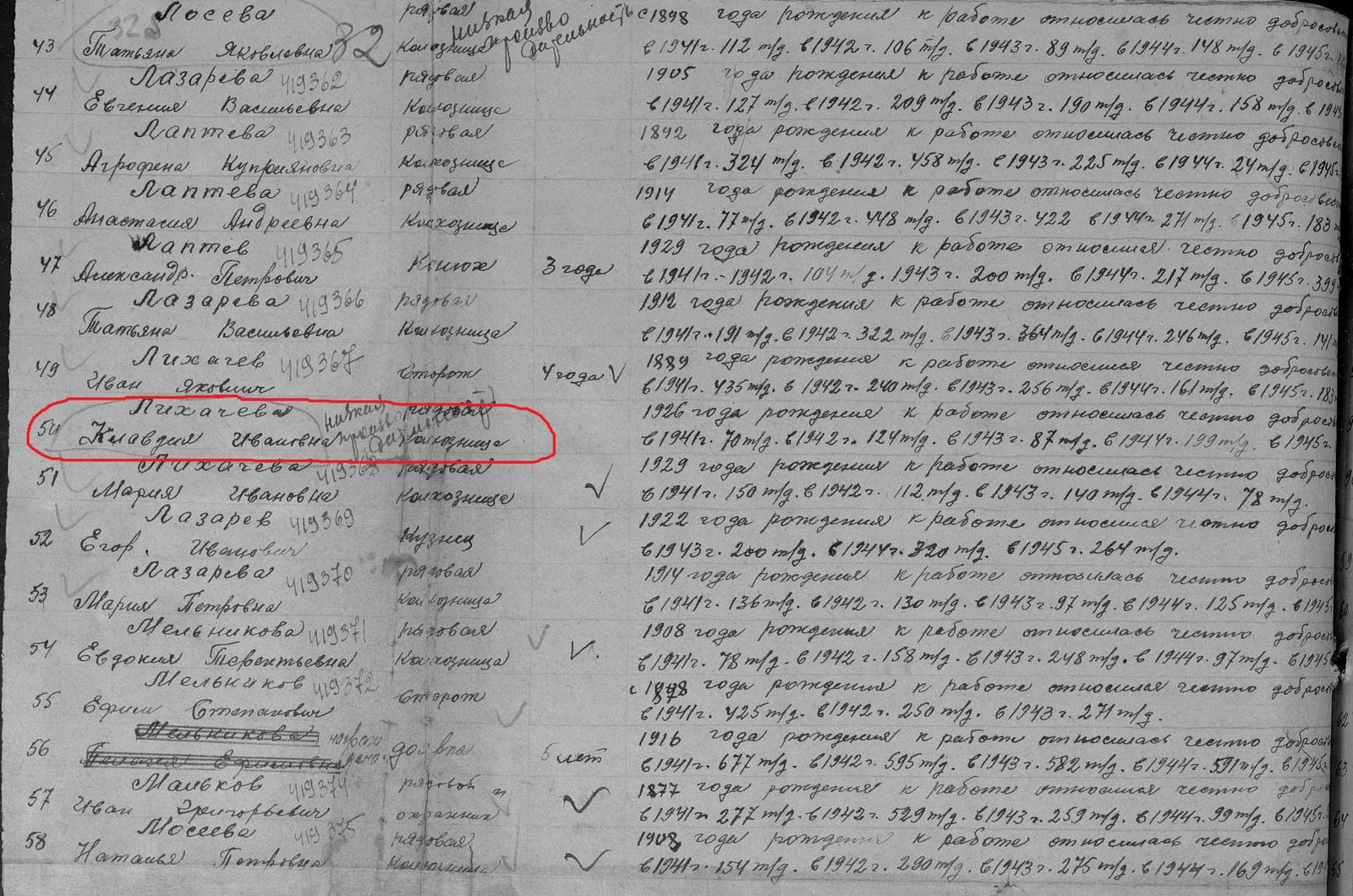 Сырова (Лихачева) Клавдия Ивановна родилась в 1926 году в с.Новошешминск Чистопольского кантона ТАССР. В годы Великой Отечественной войны работала в колхозе «Красный Октябрь» рядовой колхозницей. Награждена медалью "За доблестный труд в Великой Отечественной войне 1941–1945 гг." (Акт от 28 апреля 1947 г, фонд 3610, опись 2, дело № 325, лист 32.№ 419367). Умерла в 1997 году, похоронена на сельском кладбище с.Новошешминск.