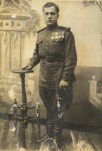 Призван в июле 1943 г в 3-й Белорусский фронт, 67 Зенитная артиллерийская девизия, командир отделения пулемётчиков крупного калибра, звание гвардии рядовой. С августа 1945 по февраль 1948 гг служил старшим писарем в том же полку. Имеет правительственные награды: