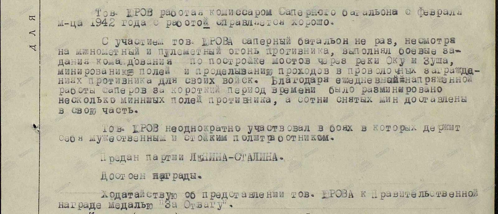 Будучи уже комиссаром, он появлялся то в одном, то в другом месте, находил нужные в такие минуты слова, от всего сердца благодарил людей. Не paз приходилось Дмитрию Сергеевичу ходить в инженерную разведку, обезвреживать коварные фашистские ловушки, минные заслоны.