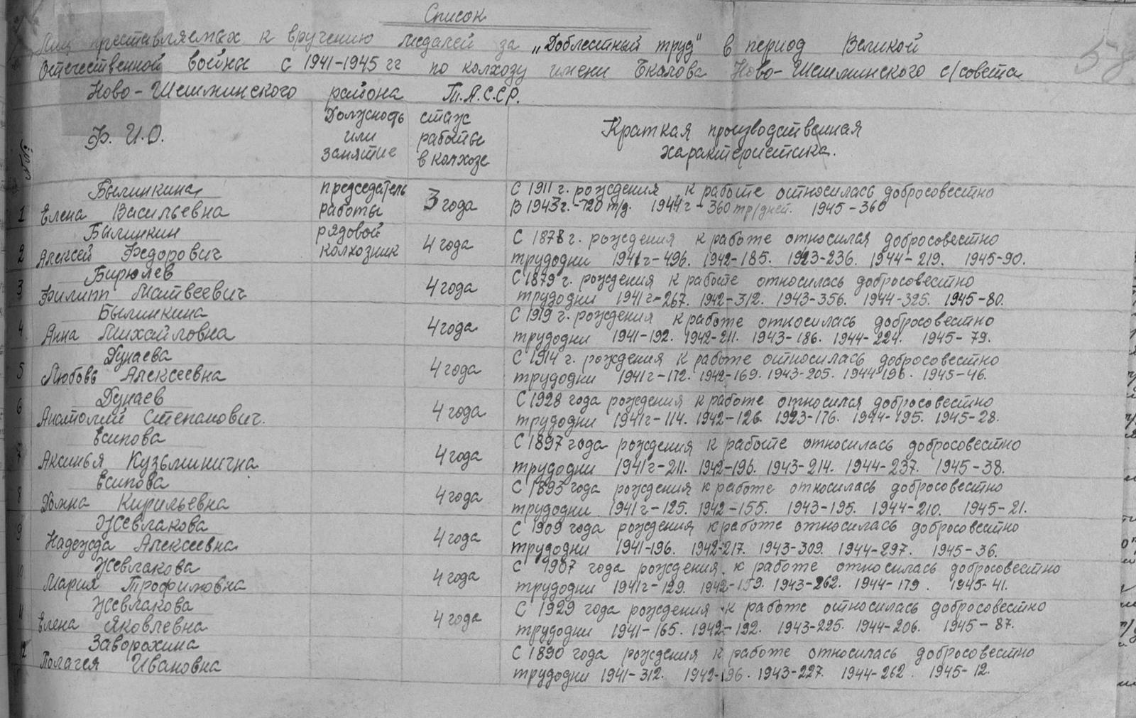 Заворохина Пелагея Ивановна родилась в 1928 году. Место жительства: с.Новошешминск. В годы войны работала в колхозе им. Молотова колхозницей. Награждена медалью "За доблестный труд в Великой Отечественной войне 1941–1945 гг." (Акт от 01.1946 г., фонд 3610, опись 2, дело № 174, лист 58). Похоронена в с.Новошешминск.