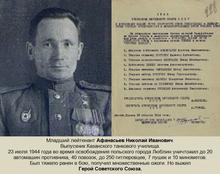 Например, Афанасьев Николай Алексеевич. Свой подвиг он совершил 23 июля 1944 года, во время освобождения от фашистов польского города Люблин.