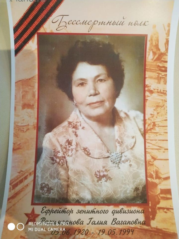 ...Халкыбызның Бөек Ватан сугышында Фашистлар Германиясен җиңүенә 75 ел булды. Без, яшь буын, бу чорның реаль чынбарлыгын, фашист илбасарлары китергән афәтнең тирәнлеген, өлкән буынның ил азатлыгы өчен фашизмга каршы көрәштә нинди корбаннарга баруын, әлеге җиңүнең әһәмиятен аңлап бетермибез, мавыктыргыч бер вакыйга күк кенә кабул итәбез шикелле. Ә бит шул сугышта катнашып аннан исән-имин кайтып, илебезгә кайтып хезмәт иткән күпме якын кешеләребез бар. Сүзем бабаемның апасы Рәхимҗанова Галия Ваһап кызы турында. Күшәр авылыннан яу кырында булган бердәнбер хатын-кыз ул безнең Галия апа. Ул 1920 елның 5 июнендә Күшәр авылында туа. Мәктәпне «5»ле билгеләренә генә тәмамлагач, Югары Көек мәктәбендә укытучы булып эшли. Сугышка да шуннан алына. Авылдашыбыз Камилә апа: “Алар сугышка киткәндә без кечкенә балалар гына идек, ләкин аларны елый-елый озата барганыбызны хәтерлим”, – дип искә алды. Бу 1942 елның июне була. Галия апа 85 номерлы зенит-артиллерия дивизионы составына алына. Әлеге дивизия сугышчан юлын Саратов шәһәреннән башлап җибәрә. 1942 елның июленнән алып 1943 елның җәенә кадәр әлеге дивизия Саратов шәһәрен фашистлар авиациясеннән саклый. Аннан Котовск, Воронеж шәһәрләре. Ә 1944 елда аларны Румыниягә җибәрәләр. Монда алар 1945 елның августына кадәр булалар. Безнең әти һәм абыйлар аны яратып Алма апа дип йөртә иде. Ул сугыш турында сөйләргә бик яратмаган. «Ул афәтне күрергә язмасын балалар, ул кино түгел», дип әйтә торган булган. Сугыштан сонгы авыр елларда апаебыз сугыштан кайткач Әтнәдә райкомда хезмәт куйган, Мәскәүдә партия мәктәбендә укыган. Аннан ул Казанда “Победа” кинотеатрында администратор, Мәгариф йорты китапханәсе җитәкчесе булып эшләгән, намуслы хезмәте өчен бик күп Мактау грамоталары белән бүләкләнгән. Алма апайга бергә хезмәт иткән кызлары “Истәлек дәфтәре” язганнар. 1945 елда язылган әлеге дәфтәр әтиемнең апасы Фәридә апада саклана. Анда сугыш чоры җырлары, теләкләр язылган. Апалар, үзләренең адресларын язып, бер-берләрен югалтмаска, аралашып яшәргә сүз куешканнар. Галия апаның сугышчан дуслары арасында төрле милләт вәкилләре булуга игътибар иттем. Дәфтәрнең ахырында 1977 елда сугыш бетеп, 32 ел узгач, Волгоград шәһәрендә булган очрашуда язган язмалар да бар. Галия апа сугышчан иптәшләре, фронтташ дуслары белән 1976 елда Саратов, 1979, 1982 елларда Воронеж, 1984 елда Котовск шәһәрләренә очрашуларга бара. Фәридә апаның архивында әлеге очрашулар турында язылган “Голос рабочего”, “Ленинский путь” газеталарында басылган мәкаләләр дә саклана. Бөек Җиңүнең 49 еллыгына Алма апа туган авылы Күшәргә кайта. Кызганычка каршы, шуннан соң озак та үтми, бәхетсезлек очрагына эләгеп 74 яшендә вафат була. Рәхимҗанова Галия Күшәр авылында җирләнгән. Сугыш ул – аерылу, күз яше, ятимлек, ялгызлык, җимереклек, үлем. 1941елда башланган Бөек Ватан сугышы кешелек дөньясына иң зур югалтулар, бәла-казалар алып килгән. Без кечкенәдән М.Җәлил, Ф.Кәрим, Ә.Еники, Х.Туфан һ.б. бик күп әдипләребез, язучыларыбыз иҗаты, кинофильмнар, китаплар аша сугыш барган чорны күзалладык. Дәресләрдә, сыйныф сәгатьләрендә тарихи документларны, сугыш барышын өйрәндек. Укытучыларыбыз герой пионерлар, батыр сугышчылар турында сөйләделәр, музейларга алып бардылар, сугыш чоры балалары белән очрашулар оештырдылар. Инде сугыш тәмамлануга 75 ел вакыт узган. Кызганычка каршы, хатир