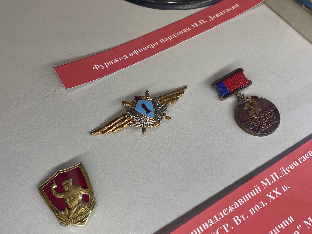 На выставке представлены личные вещи Михаила Девятаева: лётная куртка, которую он с довоенных времён носил в казанском аэроклубе; речной капитанский китель – с 1957 года Девятаев был капитаном речного флота Казани, возглавлял экипажи самых первых отечественных судов на подводных крыльях – «Ракеты» и «Метеора», макеты самолётов, в том числе и макет «Аэрокобры» (США) – на ней Девятаева подбили в 1944-м воздушном бою у Львова.