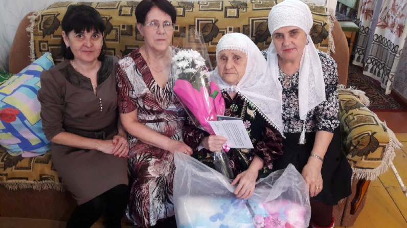 Поздравить юбиляра пришёл заместитель главы города Чистополь Михаил Ксенофонтов, который вручил от имени главы Чистопольского муниципального района Дмитрия Иванова, поздравительную открытку и ценный подарок. Халиуллина Р.М. всю свою трудовую жизнь работала на Чистопольской швейной фабрике. Начинала от швеи, также была мастером швейного участка. Является ветераном труда, имеет множество юбилейных наград.