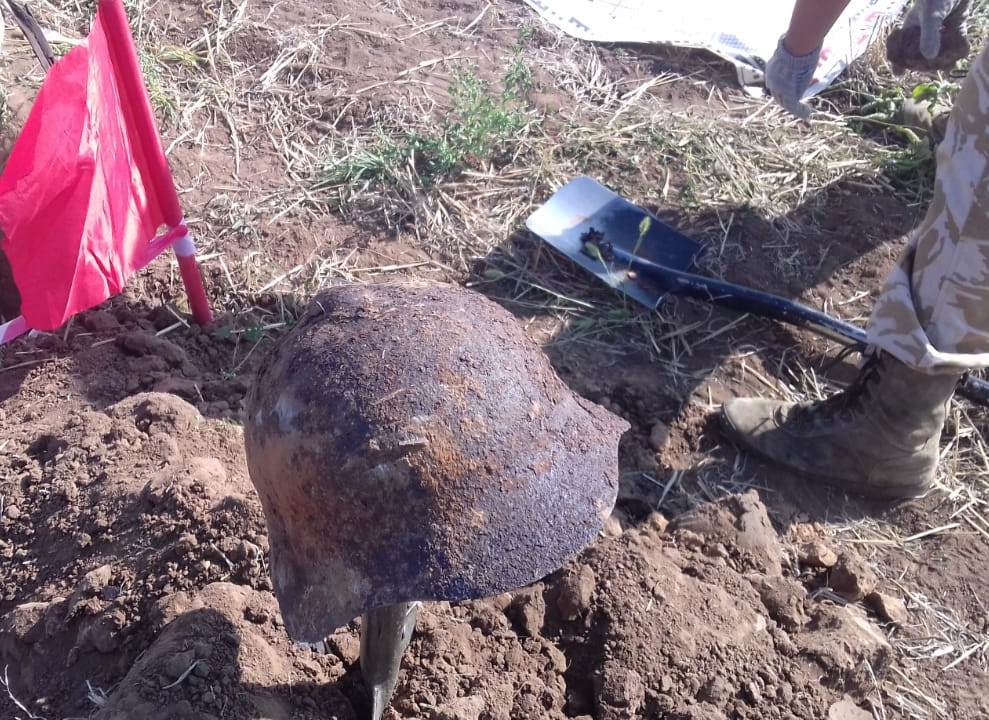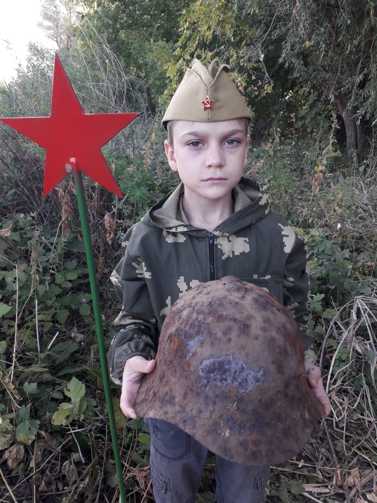 23 августа 2019 в Волгоградской области снова вспоминают жертв варварской нацистской бомбардировки Сталинграда. По традиции на мемориальном кладбище "Россошки" в этот день проходит захоронение останков воинов, погибших в боях за Сталинград, и найденных в течение года поисковиками различных регионов России на местах боёв Сталинградской битвы. Захоронены останки 1139 воинов, установлены имена 42. На территории Городищенского района завершают свою "осеннюю" Вахту поисковые отряды из Татарстана: "Нефтехимик" (г. Нижнекамск), "Выстрел" (г. Чистополь), "Звезда" (п. Алексеевское). На основном фото: юный боец отряда "Нефтехимик" Рим Соловьёв с красноармейским стальным шлемом обр. 1936г. в руках.