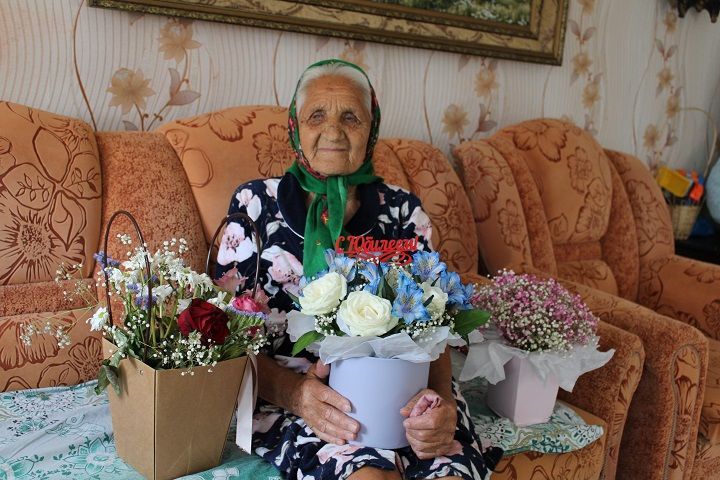 — Два дня отмечали, — рассказывает хозяйка. — 25 числа наш сельский Дмитрий Сергеевич приходил, из соцзащиты и из нашего клуба. Вот тут девчата стояли и уж как хорошо пели! Молодцы! Спасибо им большое! Принесли цветы и подарки. А 29-го вся родня собралась. Столы ставили на берегу перед домом на приволье. Очень хорошо погуляли.