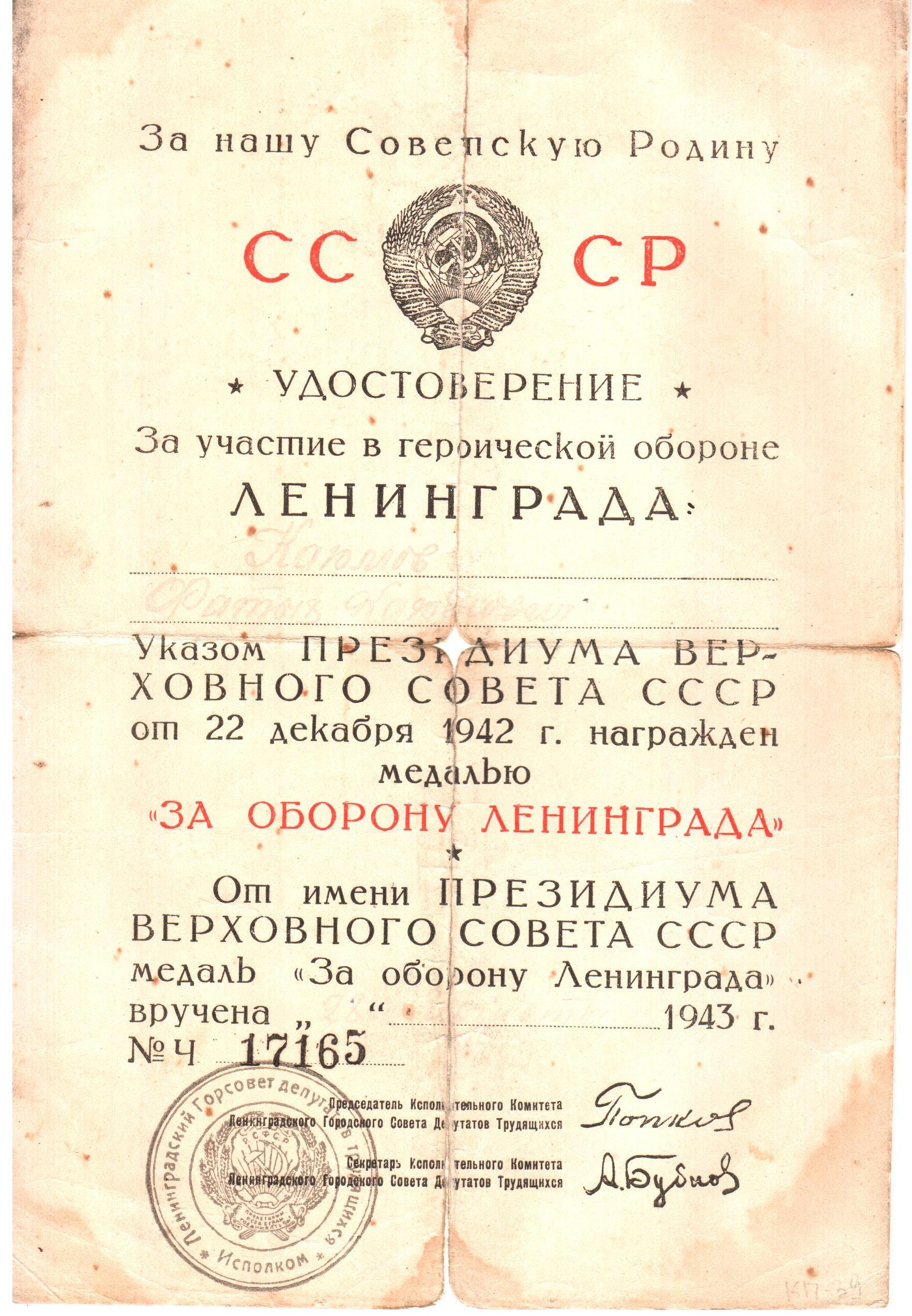 В 1942 году советским правительством была учреждена медаль «За оборону Ленинграда», которой удостоены около 1,5 млн. защитников города.