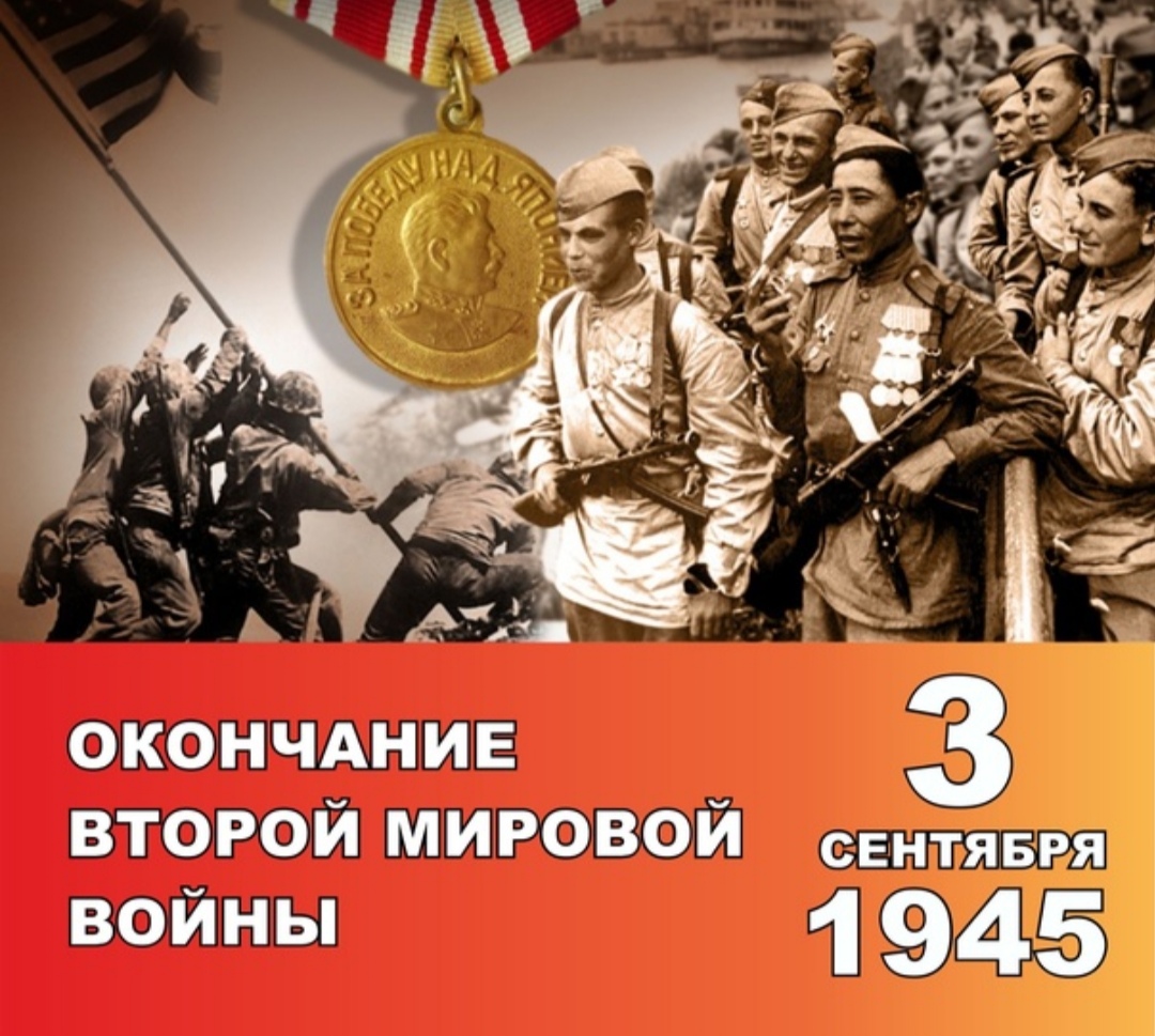 Памятная дата России - 3 сентября 1945 года - День окончания Второй мировой войны.