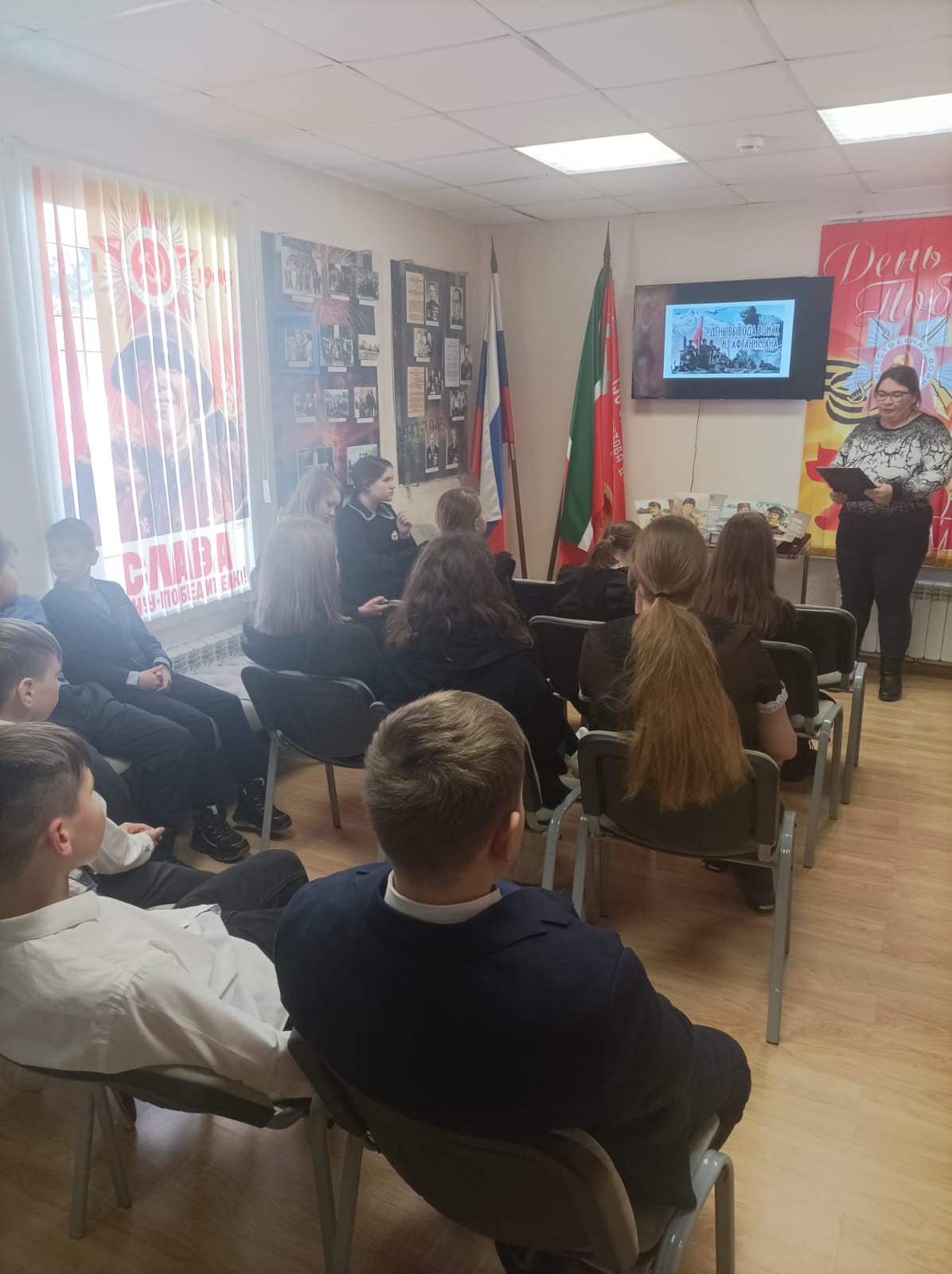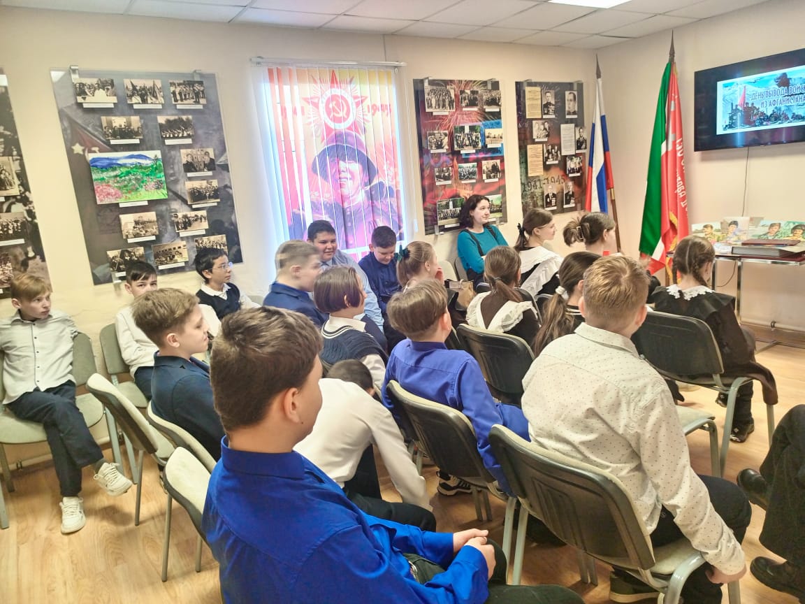 15 февраля 2024 года исполнилось 35 лет, как вывели войска Советского Союза из Афганистана. Музей Боевой Славы посетили учащиеся 6-х классов ЛСОШ №2 имени Героя Советского Союза Б.К. Кузнецова. Заведующая музеем Грабалина Гузель Наилевна подготовила для ребят встречу с тематическим видео показом, где ученики узнали о героических подвигах уроженцев Лаишевского района во время войны в Афганистане. Через афганскую войну прошло более полумиллиона советских солдат и офицеров. И тысячи военнослужащих отдали свои жизни, следуя присяге, выполняя свой солдатский долг. Мы не в праве забывать об этом…