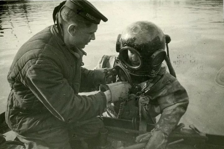 Вклад водолазов в Победу в Великой Отечественной войне просто огромен. На всем фронте в тысячи километров – от Балтики до Черного моря вместе с действующей армией по побережьям морей и рек прошли водолазы в составе военно-морских сил. Они дважды проделали сложный путь от берегов Волги и Невы до Шпрее, расчищая водные пути от мин, взорванных пролетов мостов, затопленных на фарватерах кораблей. Также они обеспечивали беспрепятственные переправы через реки. Много водолазов погибло под огнем противника, от взрывов донных мин во время разминирования. Высоко оценила страна боевые действия водолазов-разведчиков Балтийского флота, водолазные работы на переправах Невского пятачка и на Дороге жизни в блокадном Ленинграде, в Сталинградской битве на Волге и других опасных задачах. Много героев было среди водолазов.