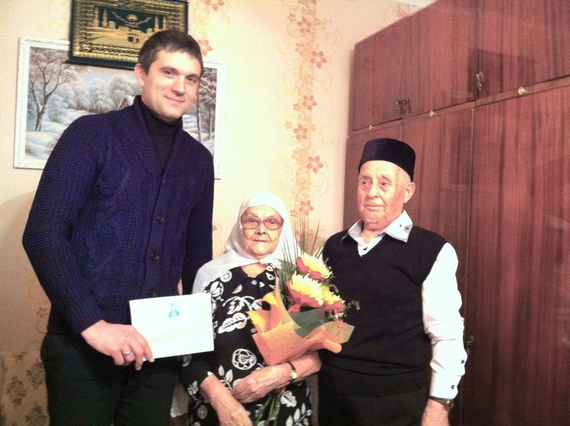 Заместитель руководителя исполкома Александр Белоногов поздравил юбиляра, и передал именную открытку от Президента России, памятный подарок и цветы от главы района. К поздравлениям присоединился имам-мухтасиб Менделеевского района Ирек хазрат Нуриев.