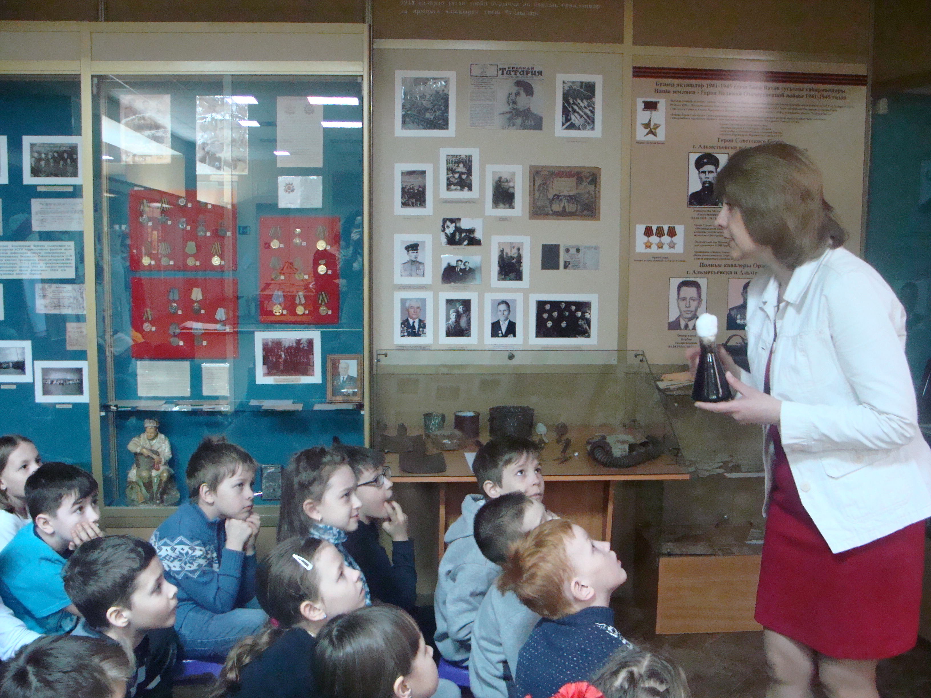 В музеях и архивах хранится подлинная история, а не историография, которую, к сожалению, можно переписать. История в документах, предметах фотографиях. Мы, сотрудники Альметьевского краеведческого музея, считаем своим гражданским долгом донести до подрастающего поколения, идущего нам на смену, правду о той Священной войне. С этой целью в музее ведётся постоянная кропотливая работа в самых разных направлениях.