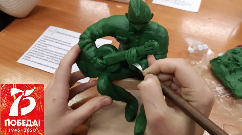 15 января, в рамках празднования 75-летия Великой Победы, преподаватель Леванова Ольга провела открытый урок по учебной дисциплине «Скульптура» для учеников 4 класса на тему «Из жизни солдата…», по лепке фигуры человека – солдата, участника Великой Отечественной войны из скульптурного пластилина. Преподаватель провела итоговый урок из целой серии уроков, посвященных Великой Победе. На них дети очередной раз узнали: тяготы жизни солдат в военное время, проговорили основные события Великой Отечественной войны, чем и как вели военные боевые действия, во что были одеты солдаты и офицеры разных родов войск, изучали строение человека, разные движения которые характерны солдатам во время войны и в часы отдыха; создавали каркас человека из проволоки, с соблюдением пропорций, придавали ему определенную позу по эскизу, далее нарастили нужный объем из фольги и пластилина.