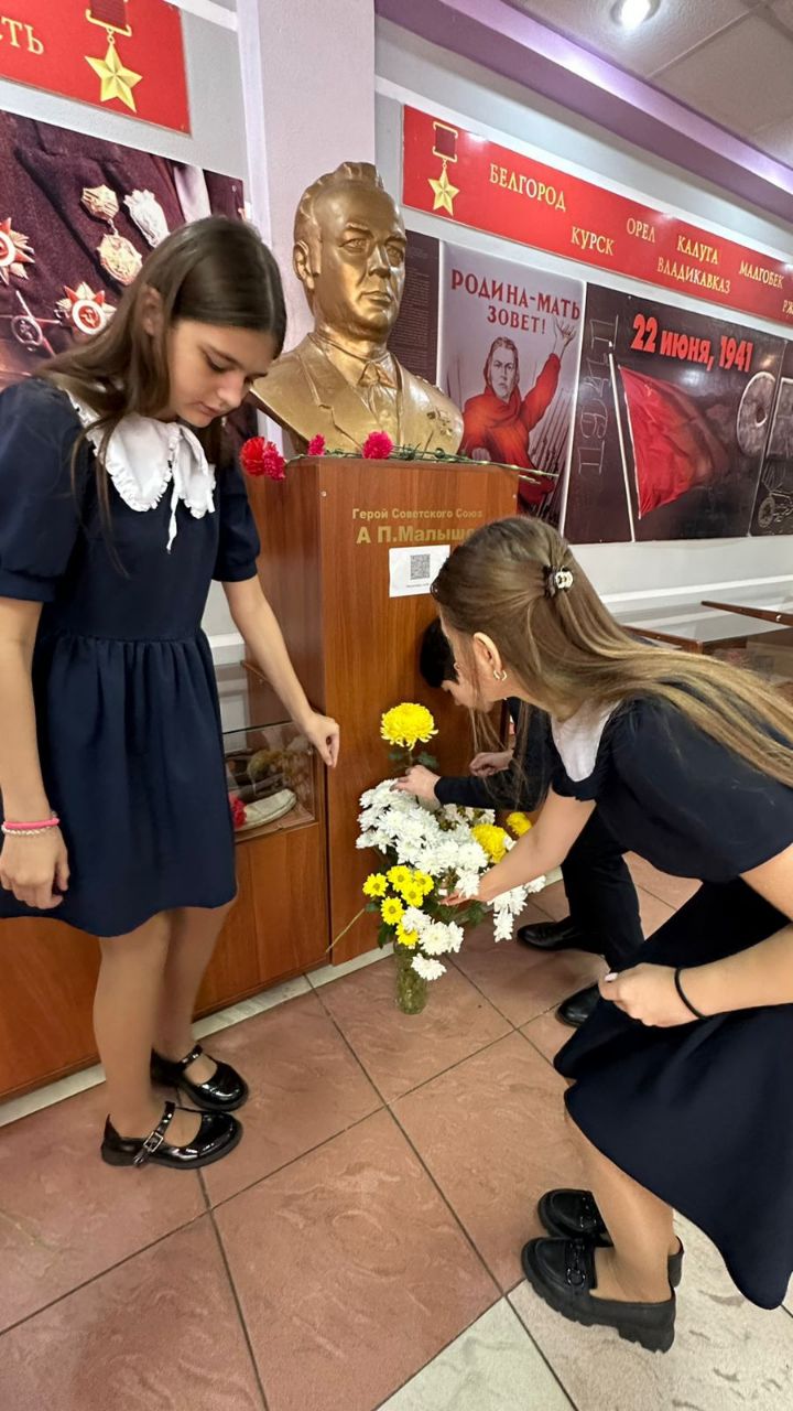 В школе отметили день рождения Алексея Петровича и возложили цветы на горке Героев. (1-ое фото, слева дочь - Нонна Алексеевна)