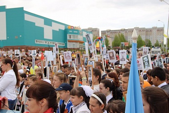 Праздничные мероприятия начались с парадного шествия «Бессмертного полка». В колоннах торжественным строем прошли камполянские школьники и студенты, представители трудовых коллективов поселка, которые несли в руках портреты отцов, дедов и прадедов – участников Великой Отечественной войны. Участников парада приветствовали глава муниципального образования Александр Павлов, его заместитель Татьяна Краснова, представители депутатского корпуса Совета местного самоуправления, руководитель исполнительного комитета муниципалитета Ринат Салахутдинов. Когда колонны сомкнулись у Монумента Победы, начался торжественный митинг. С трибуны мероприятия под звуки мелодий военных лет звучали проникновенно-торжественные слова, стихотворные строки и песни, посвященные Великой Победе. Дети отпустили в небо гирлянды из сотен белых шаров, символизирующих белых голубей мира.тУчастники митинга минутой молчания почтили память героев-земляков. Почетный караул отдела полиции «Камскополянский» произвел праздничные залпы, после чего ветераны войны, труженики тыла вместе с официальными лицами возложили к подножию Монумента Победы красные гвоздики. Вслед за ними цветы, венки и гирлянды к подножию памятной стелы и мемориальным доскам понесли руководители предприятий и организаций, взрослые и дети, все желающие. Кульминацией торжественного митинга стала общая фотография на память, которую чуть позже вручили каждому ветерану.