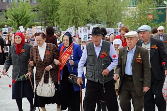 Виновники торжества - ветераны Великой Отечественной войны и труженики тыла - разместились на площадке у монумента. Остальные представители военного поколения, те, кто не смог прийти на праздничные мероприятия, принимали поздравления и подарки на дому. У памятной стелы в центре мемориального комплекса с раннего утра несли вахту «форпостовцы» и старшеклассники. На стене памяти – более 300 фамилий героев-земляков, увековеченных в граните мемориальных досок.