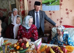Заместитель руководителя Исполнительного комитета Дрожжановского района Айрат Залялов и глава Алешкин-Саплыкского сельского поселения Пётр Артемьев поздравили с 90-летием жительницу села Татарская Задровка Рушанию Асадулловну Мушарапову, вручив ей поздравительную письмо Президента РФ Владимир Путина и подарок от имени главы района.