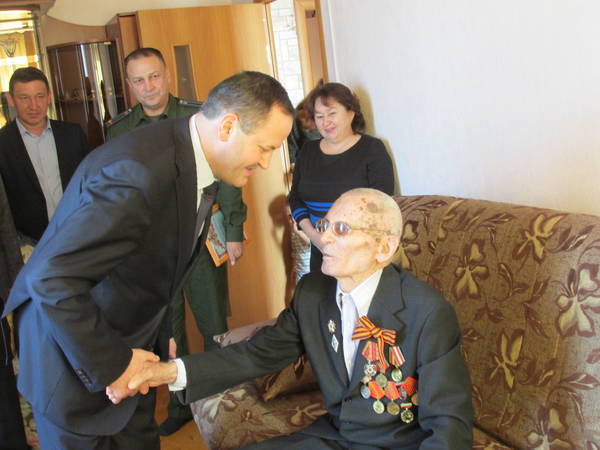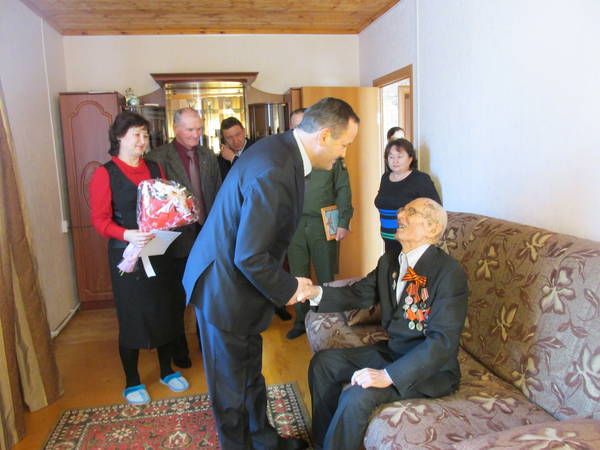 Глава района вручил персональное поздравление от имени Президента РФ Владимира Путина и ценный подарок.
