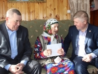 Гости вручили юбилярше персональное поздравление Президента Российской Федерации Владимира Путина и подарок от главы района.