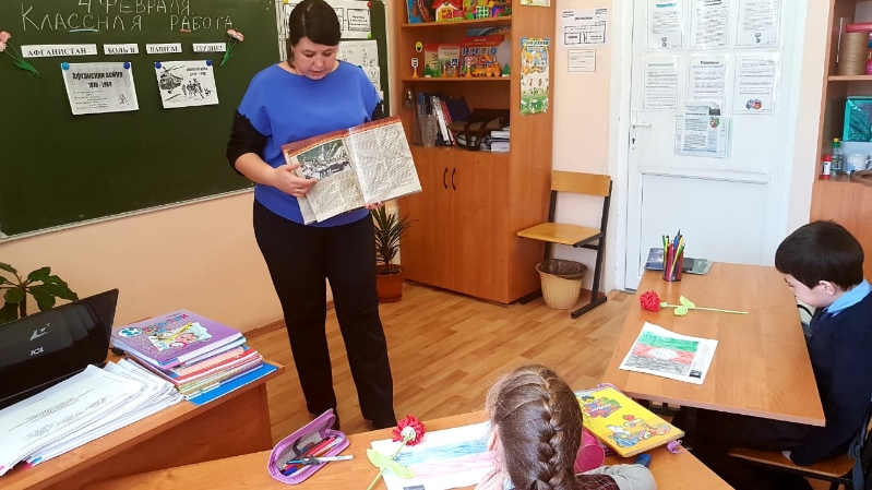 В 3 коррекционном классе Тетюшской татарской школы состоялась беседа «Афганистан - боль в нашем сердце». Классный руководитель Емельянова Е.П. продемонстрировала ребятам книгу о воинах-героях Афганской войны «Герои Российской Федерации». В память о жертвах этой страшной войны, ребята раскрасили флаги стран Афганистана и России, а так же изготовили гвоздики, как символ вечной памяти молодых воинов отдавших жизнь ради мирного неба.