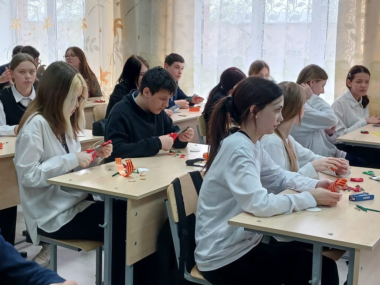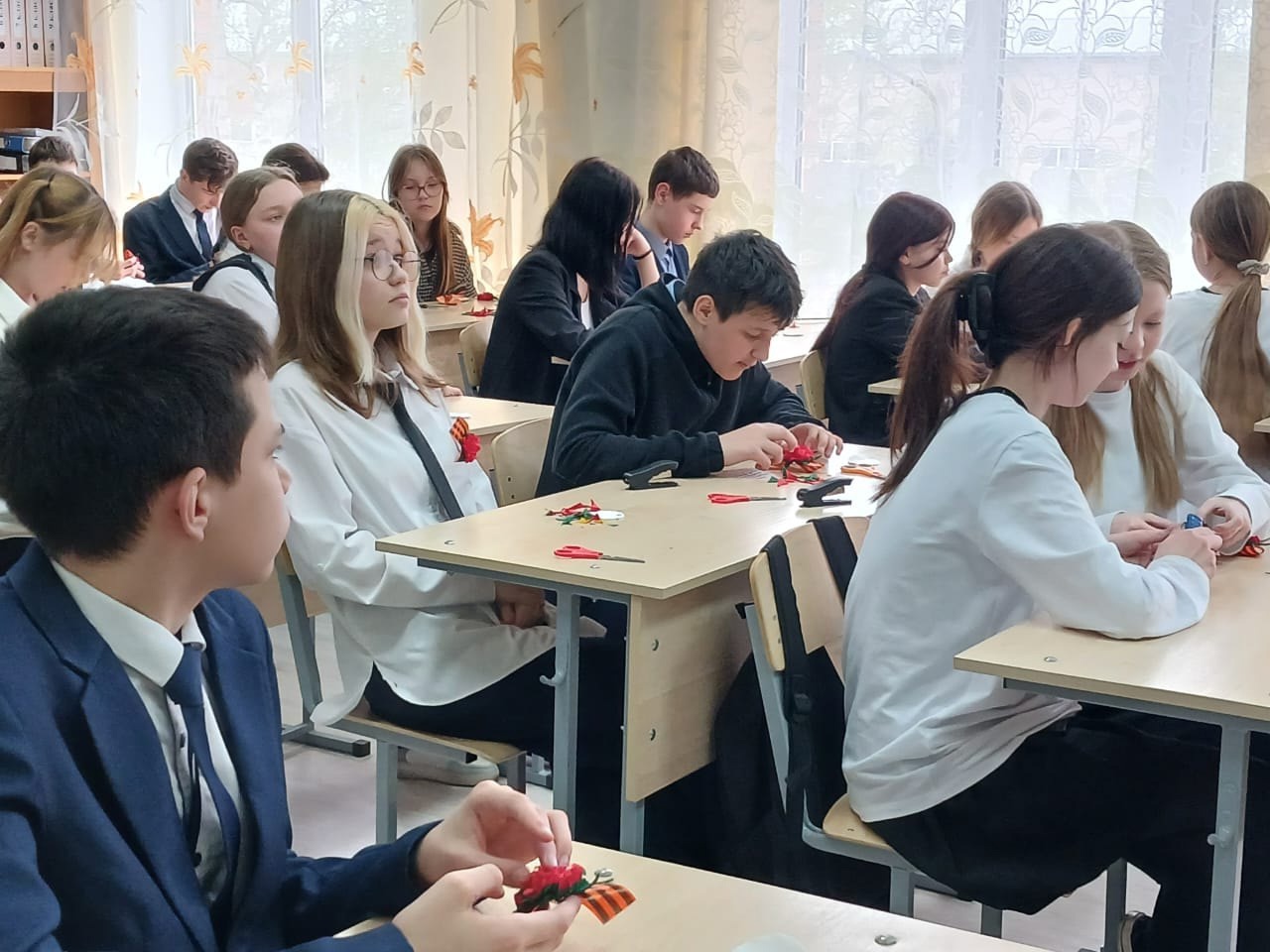В рамках акции 80 добрых дел ко Дню Победы учащиеся 7 А и 7Б классов (кл.рук:Сельскова С.А. и Аглиуллина Л.Х.) пригласили в МБОУ СОШ 13 коллектив литературно-мемориального музея Ярослава Гашека, девушки провели мастер-класс по изготовлению броши "Гвоздика Победы", а так же рассказали во вступительной части о символах Победы: георгиевской ленточке, красной гвоздике, сопровождая беседу содержательной презентацией. Дети и классные руководители после выходных и до Дня Победы будут носить эти броши, потому что МЫ ПОМНИМ! МЫ ГОРДИМСЯ!