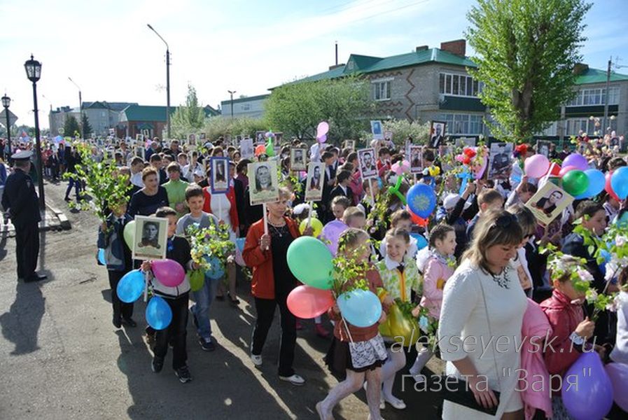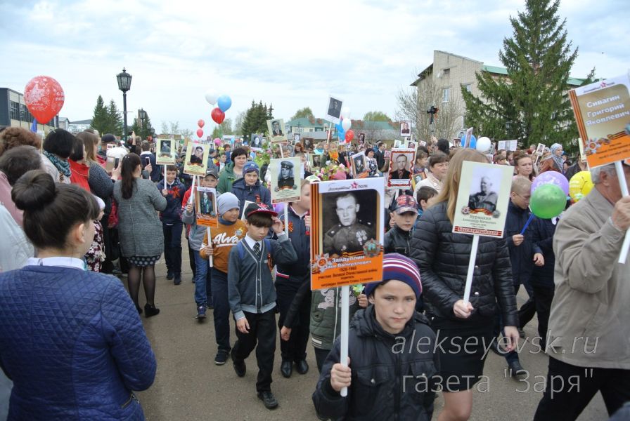 9 мая 2017 г. в районном центре Алексеевское в третий раз состоялась торжественная акция "Бессмертный полк". С каждым годом в ней принимает участие всё больше жителей - в этом году их было около 4 тысяч человек. Подробный фоторепортаж из материалов газеты "Заря" http://www.alekseyevsk.ru/ru/2014-09-25-07-02-02/item/9564-bessmertnyiy-...