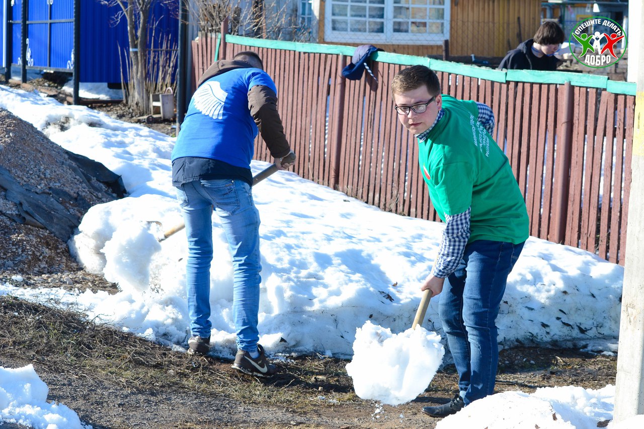 В рамках Всероссийской акции «Весенняя неделя добра» активисты движений «Мы за будущее», «Форпост», «Волонтеры Победы», а так же Бавлинского отделения Аграрного молодежного объединения РТ при содействии специалистов ГАУСО «КЦСОН Милосердие»», отделения надомного социального обслуживания посетили дом ветерана труда, труженицы тыла – Анны Поджидаевой.