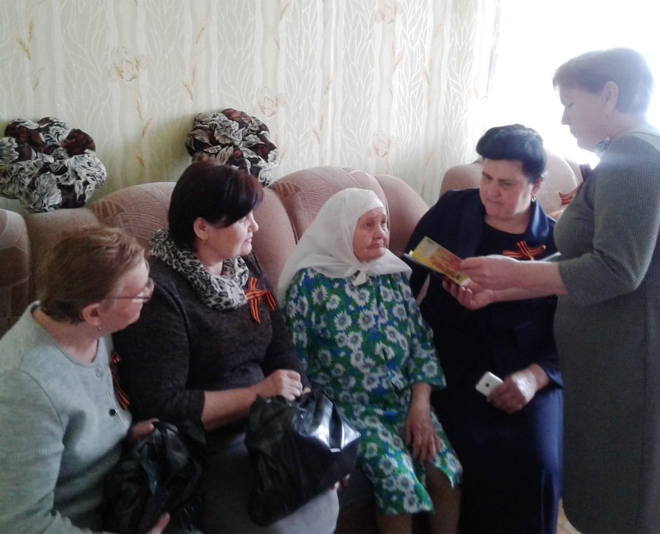 Председатель совета ветеранов Тамара Гимадиева, работник Татсараловского сельского поселения Нурзия Гимадиева, библиотекарь Наиля Зиганшина и методист сельского клуба Танзиля Нуруллина по доброй традиции посетили ветеранов на дому.