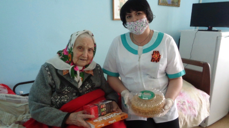 Представитель Чистпольского межрайонного следственного отдела СУ СКР по РТ Альбина Валиева от всего коллектива передала ветеранам Великой Отечественной войны, подопечным ГАУСО «Чистопольский дом-интернат для престарелых и инвалидов «Юлдаш», поздравление с 75 летием Великой Победы и продуктовые пакеты. Директор Елена Четырчинская вручила подарки труженикам тыла.