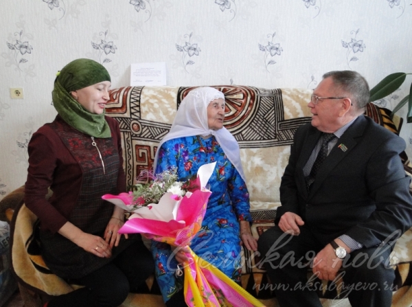 Со столь знаменательной датой поздравили ее заместитель главы района Юнус Хамидуллин и глава Староибрайкинского сельского поселения Мансур. Они выразили искренние пожелания здоровья и долголетия, вручили подарки и цветы.