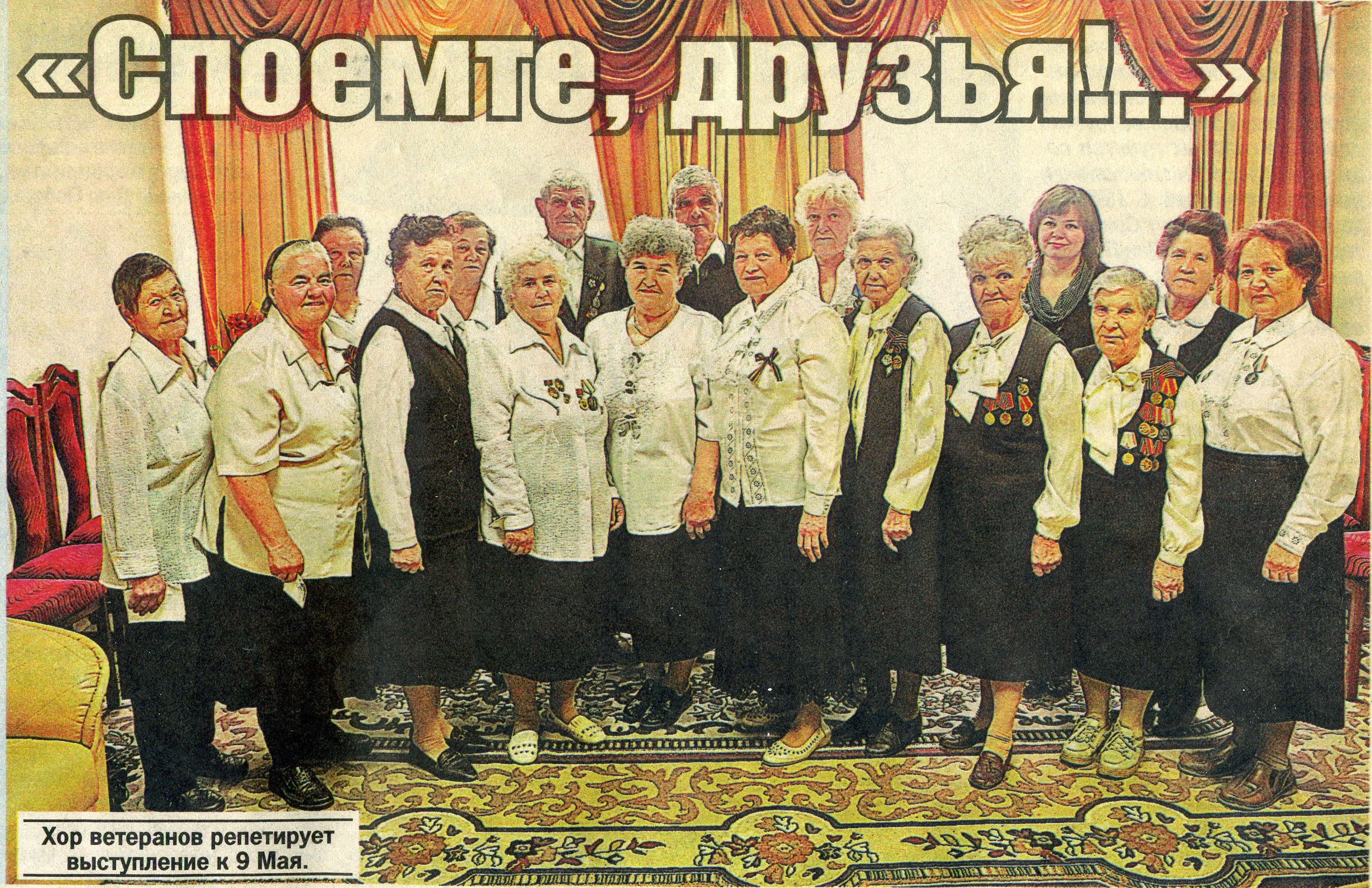 Народное вдохновение. На днях приказом Министерства культуры Республики Татарстан хору ветеранов «Вдохновение» присвоено звание «Народный». КАК ЗАРОЖДАЛСЯ ХОР РАЙОННОГО ДОМА КУЛЬТУРЫ…? В начале 70-х гг в поселке Алексеевское фронтовик, участник боевых действий под Севастополем Федор Михайлович Марусин организовал хор ветеранов войны и труда. Официально хор зарегистрировали на 40-летие Победы. В 1985 году. Руководил хором и солировал Марусин Ф.М. С 1985 года полностью сформировался коллектив хора ветеранов и участников войны при клубе «Ветеран», который впоследствии пополнялся ветеранами труда. «Наш хор существует как память о войне – это дань погибшим и благодарность живым» - так отметила участница хора Заборова Людмила Николаевна. Благодаря участию в хоре ветераны чувствуют себя нужными и востребованными. Хор для них – это активная жизнь, дружеское общение и любовь к песне. Их лозунг: «Песня строить и жить помогает…!».