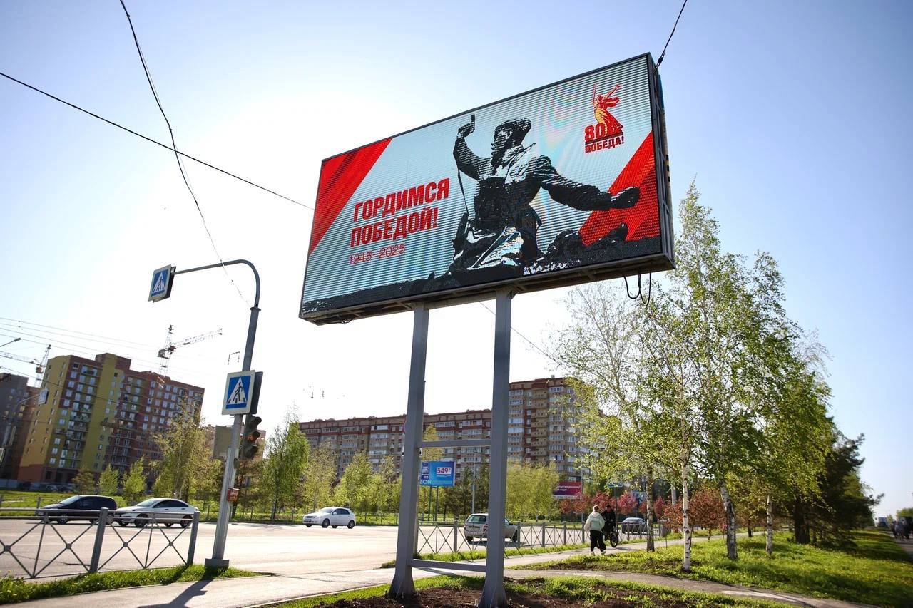 В преддверии юбилея Великой Победы улицы Альметьевска украсили символизирующими украшениями. Жители могут увидеть флаговые конструкции, декоративные композиции, консоли вдоль дорог, билборды, праздничную подсветку, тематические стенды и баннеры, а также объемные конструкции «9 мая». Общественный транспорт также оформлен в праздничном стиле.
