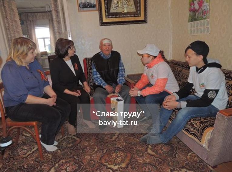 7 мая подарки раздавали волонтёры. Первым подарок депутата получил бавлинец Масгут Гильмутдинов. Ветерану 93 года. Он был очень рад видеть у себя дома гостей, с удовольствием ответил на вопросы представителей молодого поколения. Несмотря на солидный возраст, он проводил своих гостей до ворот.