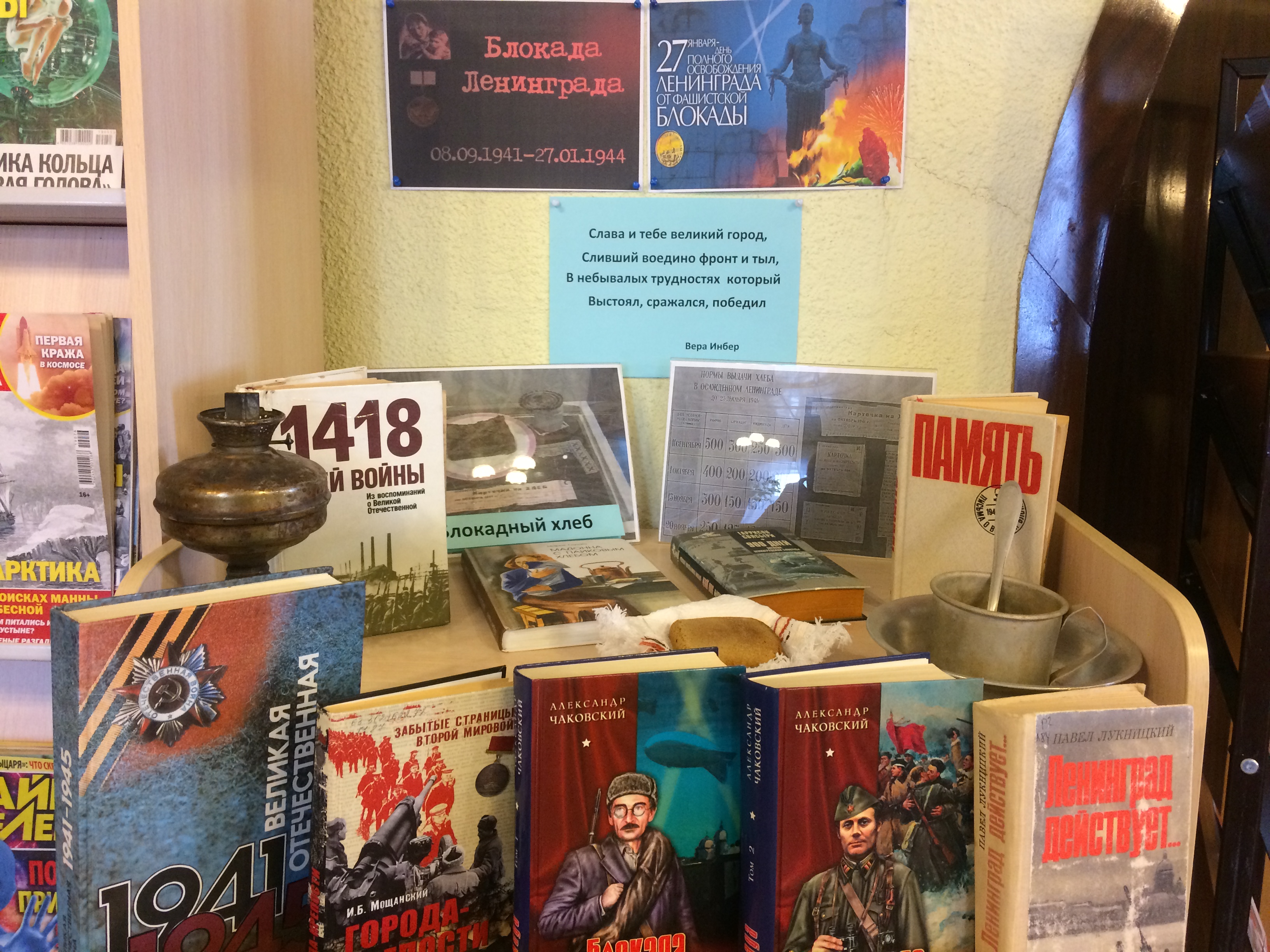 Центральная библиотека подготовила книжную выставку-инсталляцию «Блокада Ленинграда». На выставке читатели смогут познакомиться с книгами, повествующими об этом событии, полистать художественные, документальные, научно-популярные издания. Это было страшное, голодное, жестокое время. Читатели узнают о причинах возникновения блокады, о героизме жителей города, о Ладожском озере – «дороге жизни», которая помогала ленинградцам продержаться и не умереть голодной смертью. Снятие блокады Ленинграда – одновременно и радостное, и печальное событие. Это День военной славы, Победы русских солдат. И вместе с тем, символ одной из самых масштабных трагедий.