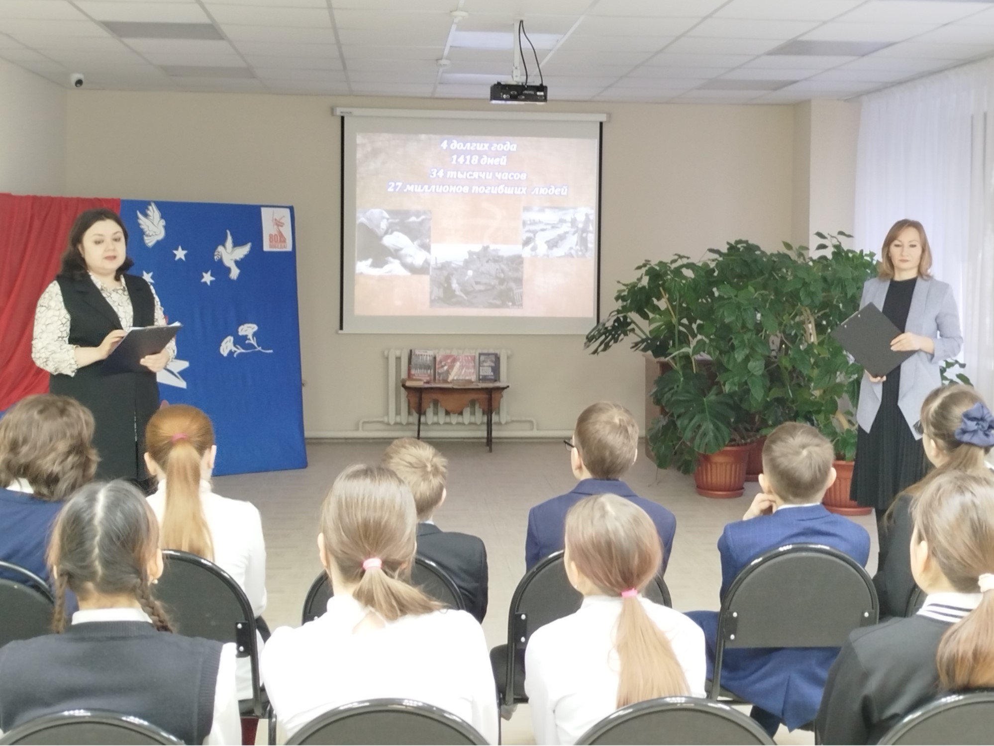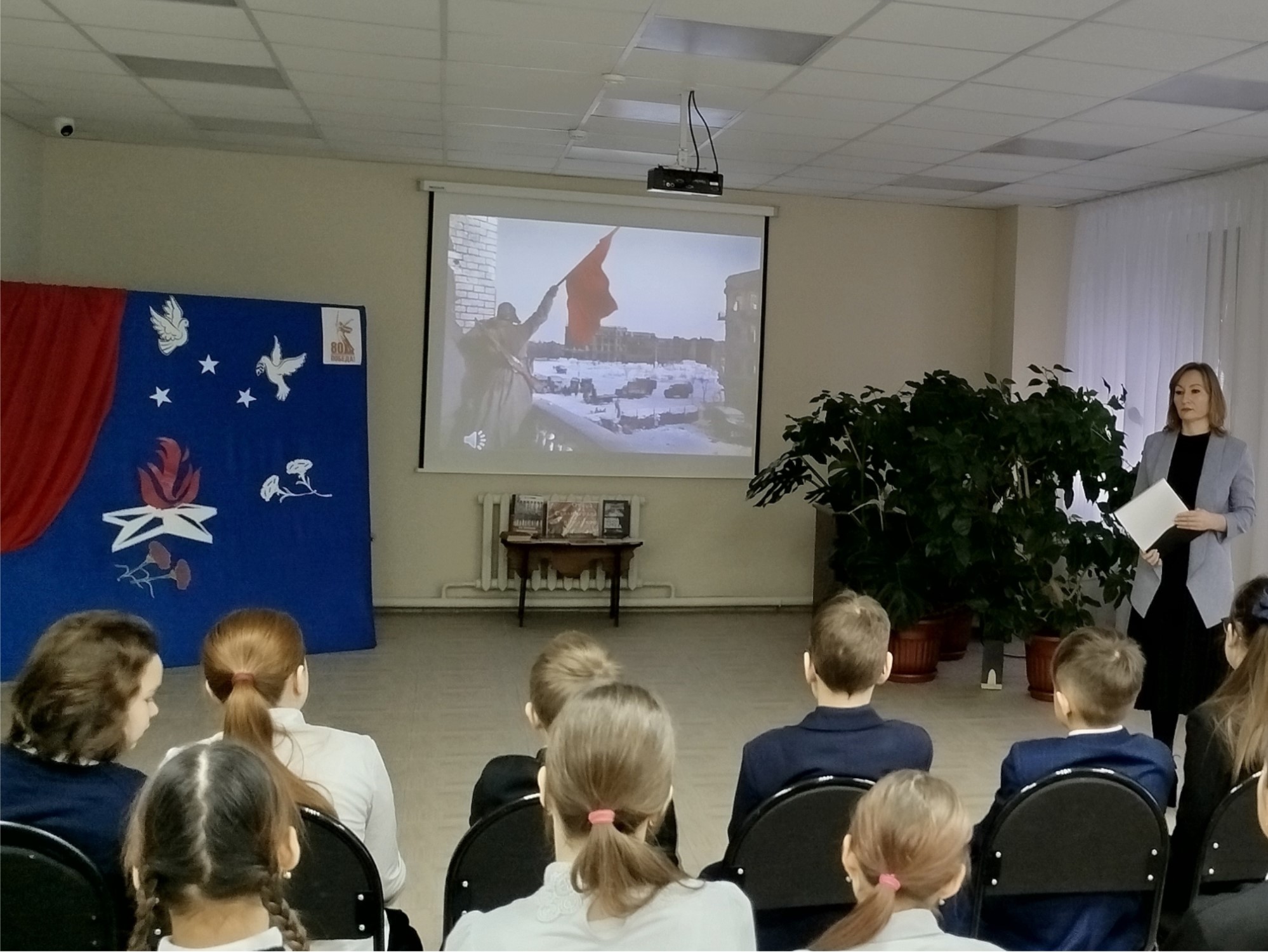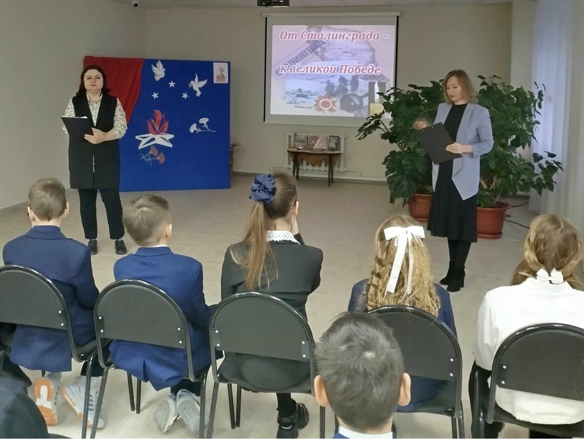 Сотрудники библиотеки семейного чтения г. Бугульма провели час мужества «От Сталинграда – к великой Победе» для учащихся школы №9, которые ознакомились с хроникой Сталинградской битвы, с беспримерным героизмом, смелостью, находчивостью санитарных инструкторов Маши Кухарской, Наташи Качуевской, Гули Королевой и многих других, спасших жизни тысячам воинам, с историческими памятниками: Мамаевым курганом, домом Павлова, музеем-панорамой «Сталинградская битва». Мероприятие сопровождалось показом документальной хроники о героизме и мужестве наших солдат и жителей города, о подвиге морского пехотинца Михаила Паникахи