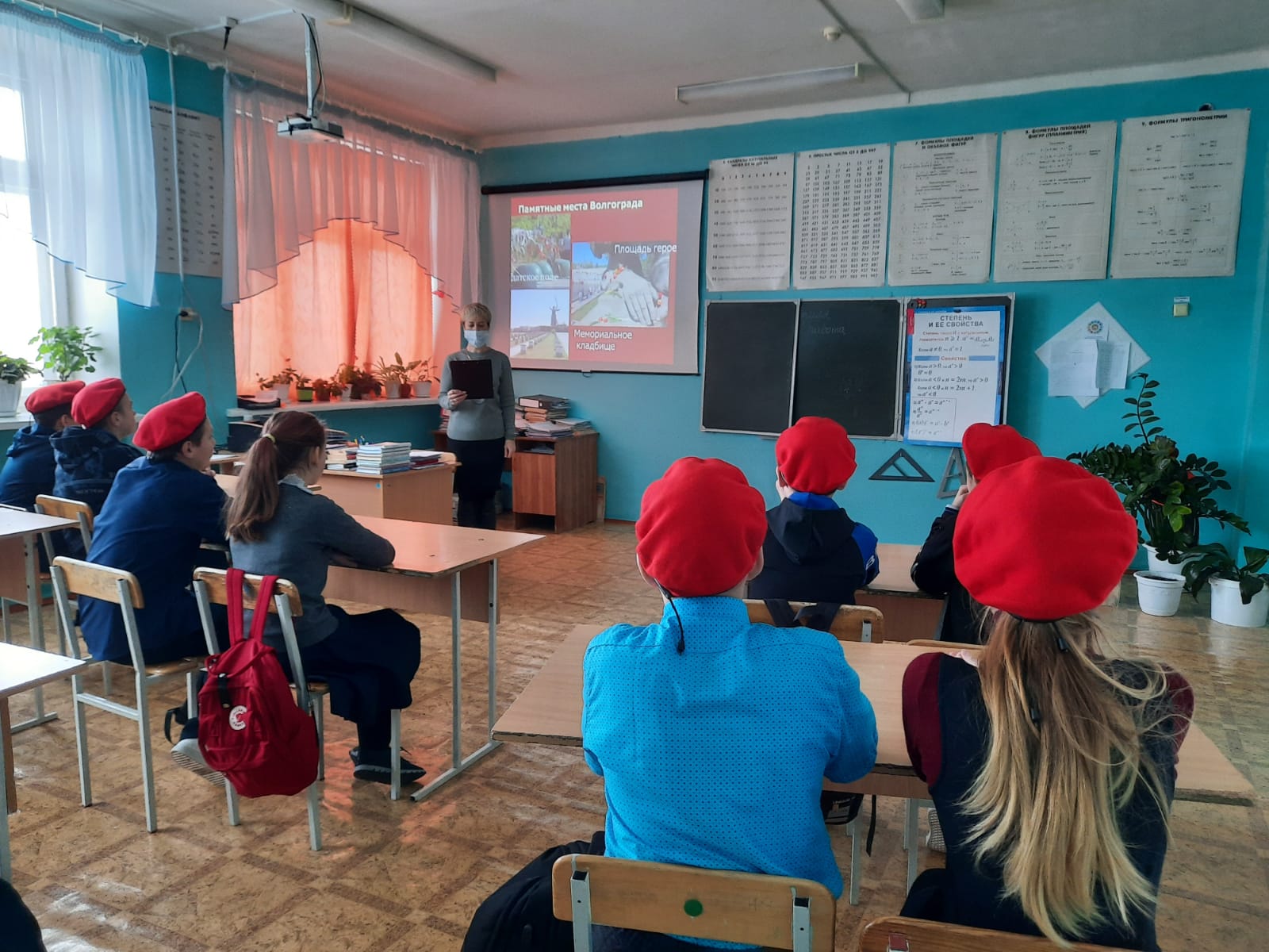 200 героических дней обороны Сталинграда вошли в историю как самые кровопролитные и жестокие. Сотни тысяч советских людей проявили беспримерный героизм и мужество, показав невероятную стойкость. Им, героям Сталинградской битвы, посвящено мероприятия час исторической памяти «Великая битва великой войны». Ведущий библиотекарь Краснооктябрьской сельской библиотекой рассказала о тяжелых днях войны под Сталинградом, о героях битвы, а также познакомила с историческими памятниками великой битвы: Мамаевым курганом, музеем-панорамой «Сталинградская битва». Рассказ дополнен видео презентацией о ходе боевых действий.