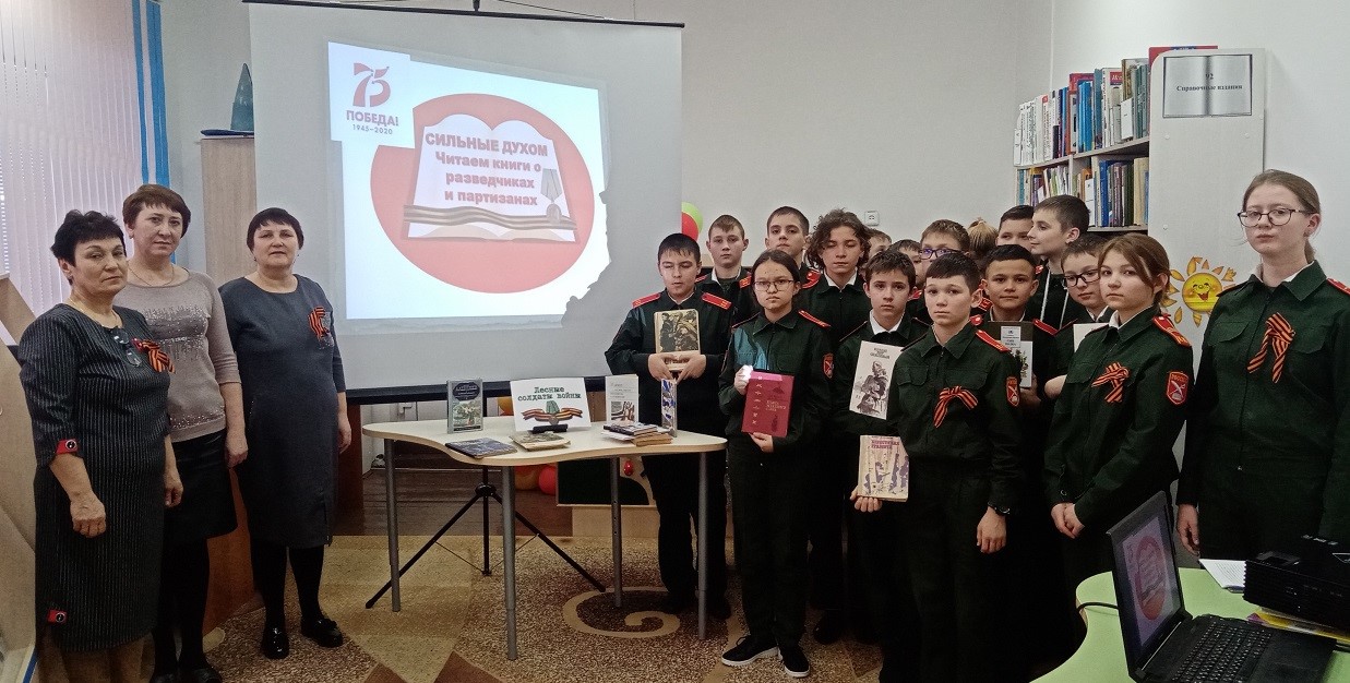 В рамках 75-летия Великой Победы Центральная детская библиотека села Черемшан приняла участие в III Всероссийской Акции «Сильные духом: читаем книги о разведчиках и партизанах», организованной Талицкой Центральной районной библиотекой имени Поклевских-Козел Свердловской области. Данная акция посвящена подвигу советских разведчиков, партизан и подпольщиков в годы Великой Отечественной войны и приурочена к дате учреждения Указом Президиума Верховного Совета СССР медали «Партизану Отечественной войны» (2 февраля 1943 года). Цель Акции – содействие историко-патриотическому воспитанию граждан на примере героического прошлого нашей страны и популяризация произведений о Великой Отечественной войне среди читателей разных возрастов.
