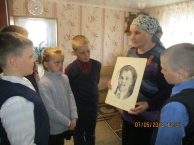 В преддверии праздника 73-ей годовщины со Дня Победы Патрикеева Н. Ф. с учащимися посетили на дому Соколову Марию Ивановну, племянницу героя Советского Союза Савельева Федора Петровича. При нашей встречи Мария Ивановна показала детям фотографии героя, рассказала о боевой славе , которая пришла к нему на берегах Немана. Проявляя исключительное мужество и геройство, капитан Савельев первым переправил свою батарею и занял боевой порядок на левом берегу реки Неман . О герое живет человеческая память, передающаяся по наследству. Каждый раз сын Василий и внук Павел 9 Мая приезжают в Парк Победы в сл. Петропавловскую к памятнику.
