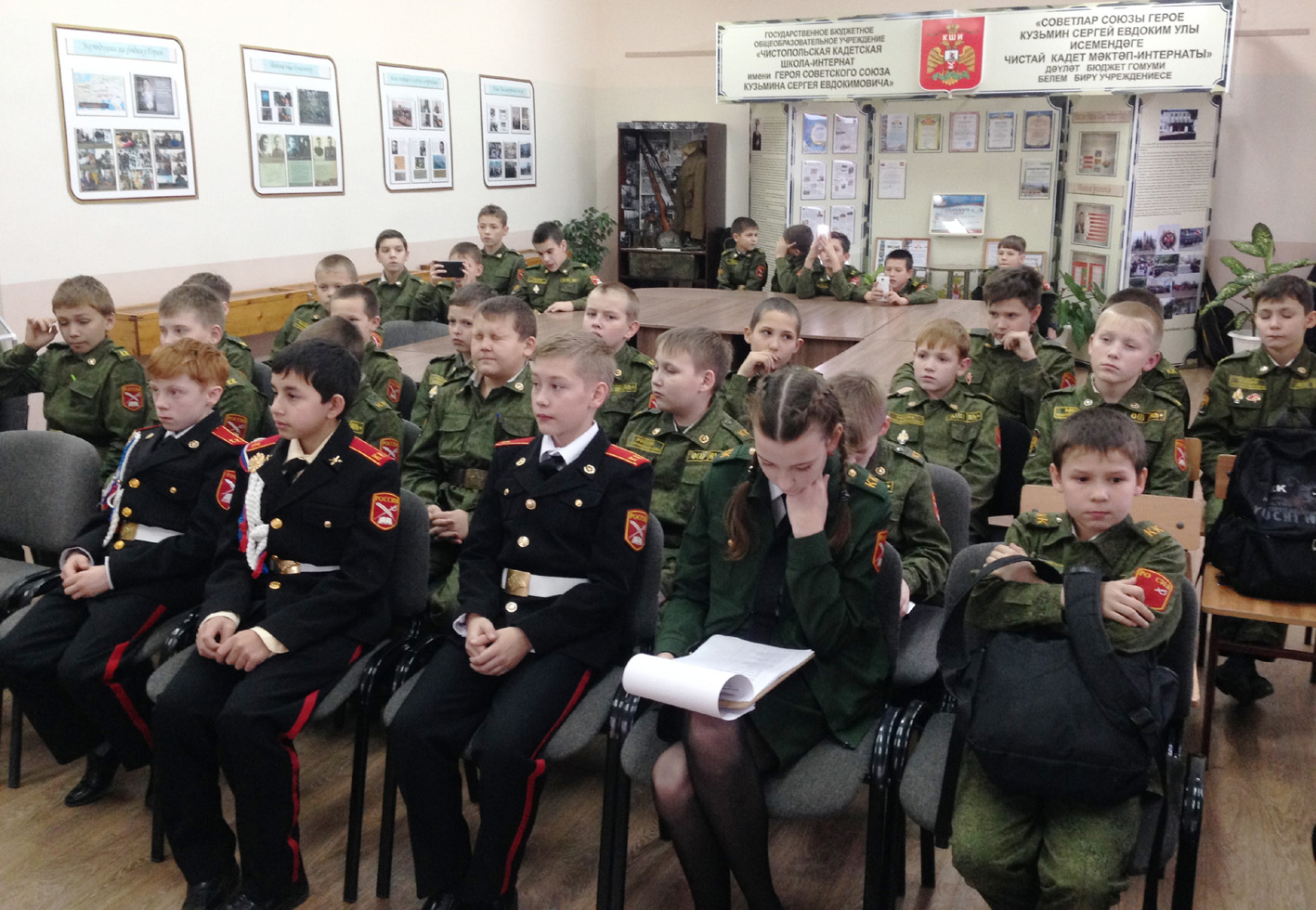 На мероприятии во II корпусе руководитель музея С.А. Скучаева познакомила кадет 5 «б» класса с историей поискового движения в Республике Татарстан и г.Чистополь.